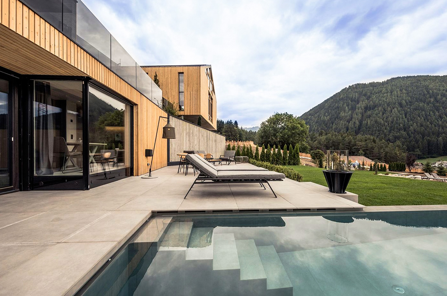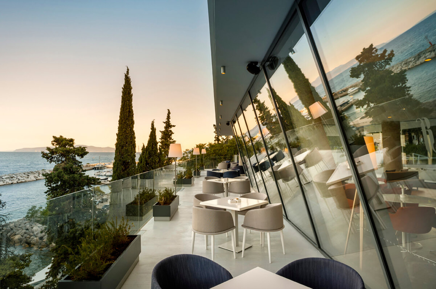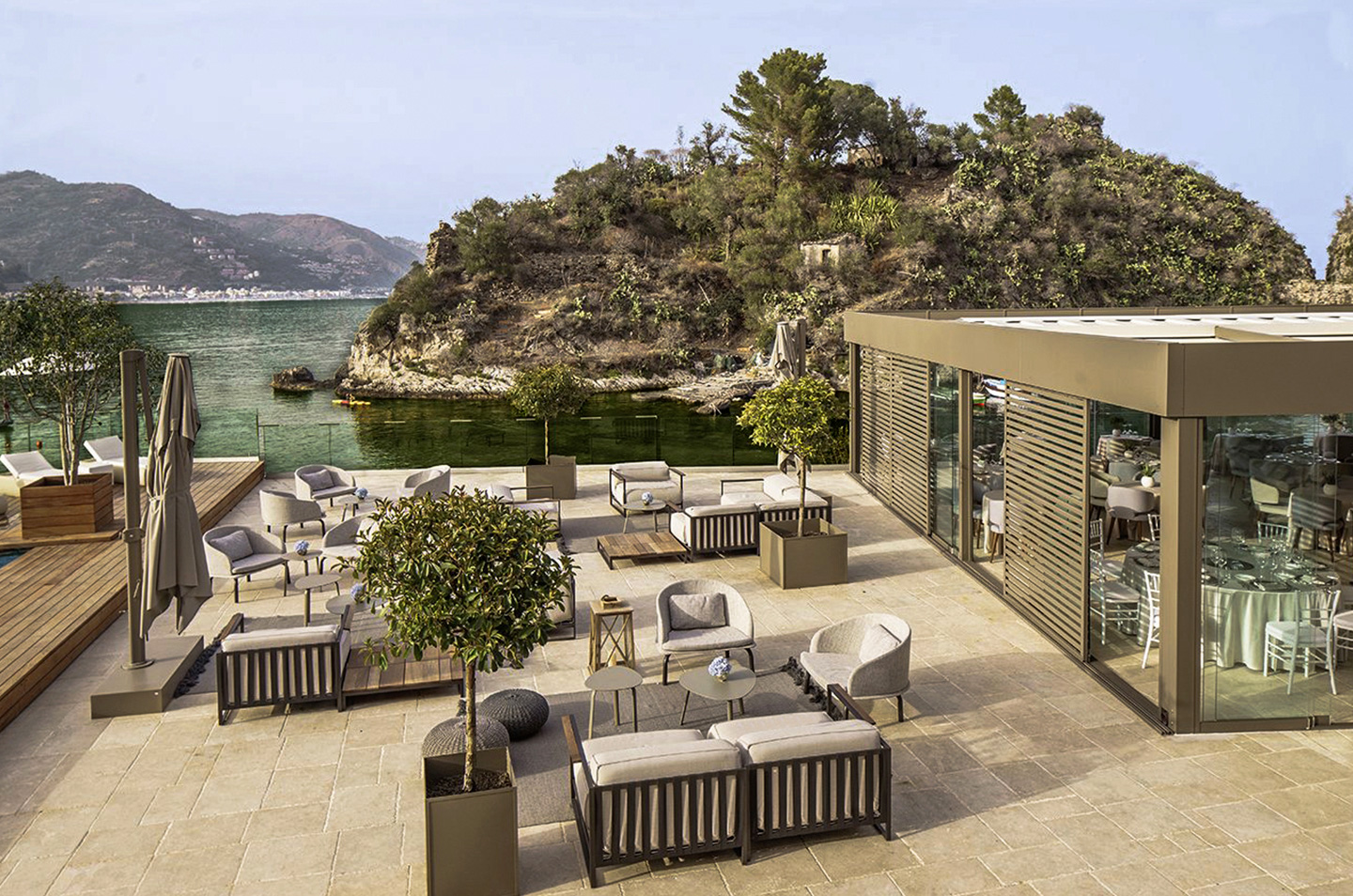 For the exterior design, it was chosen to combine the neoclassical style of the luxurious hotel with the modern furnishings of Talenti with the nautical appeal of cruise alu with an elegant-retro look and rounded lines, combined with different tables of the same line.