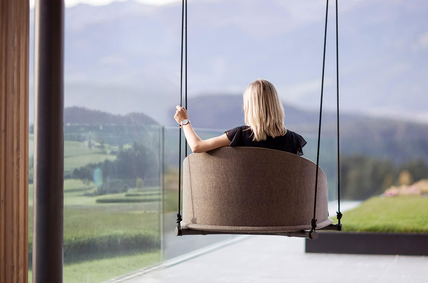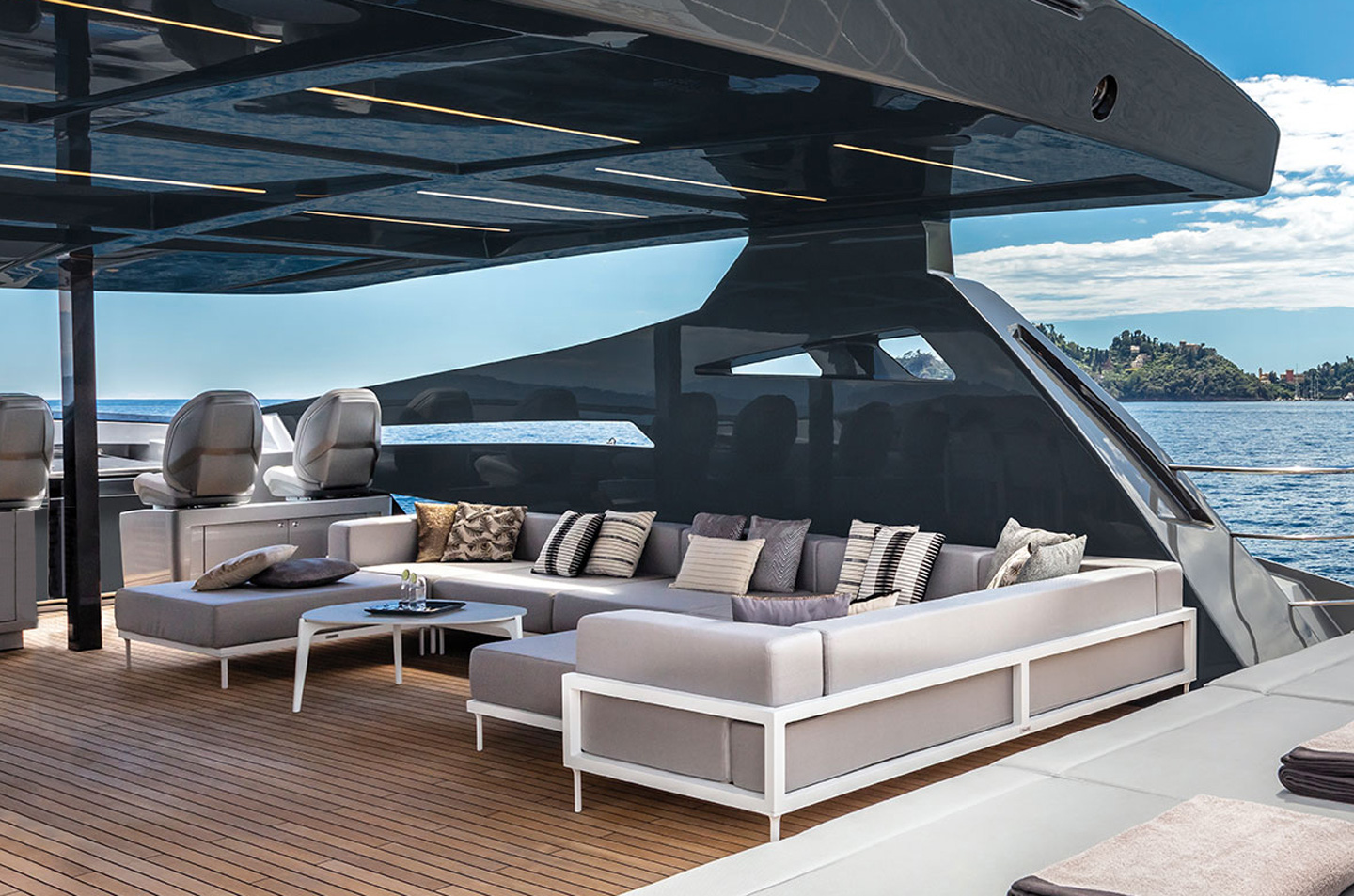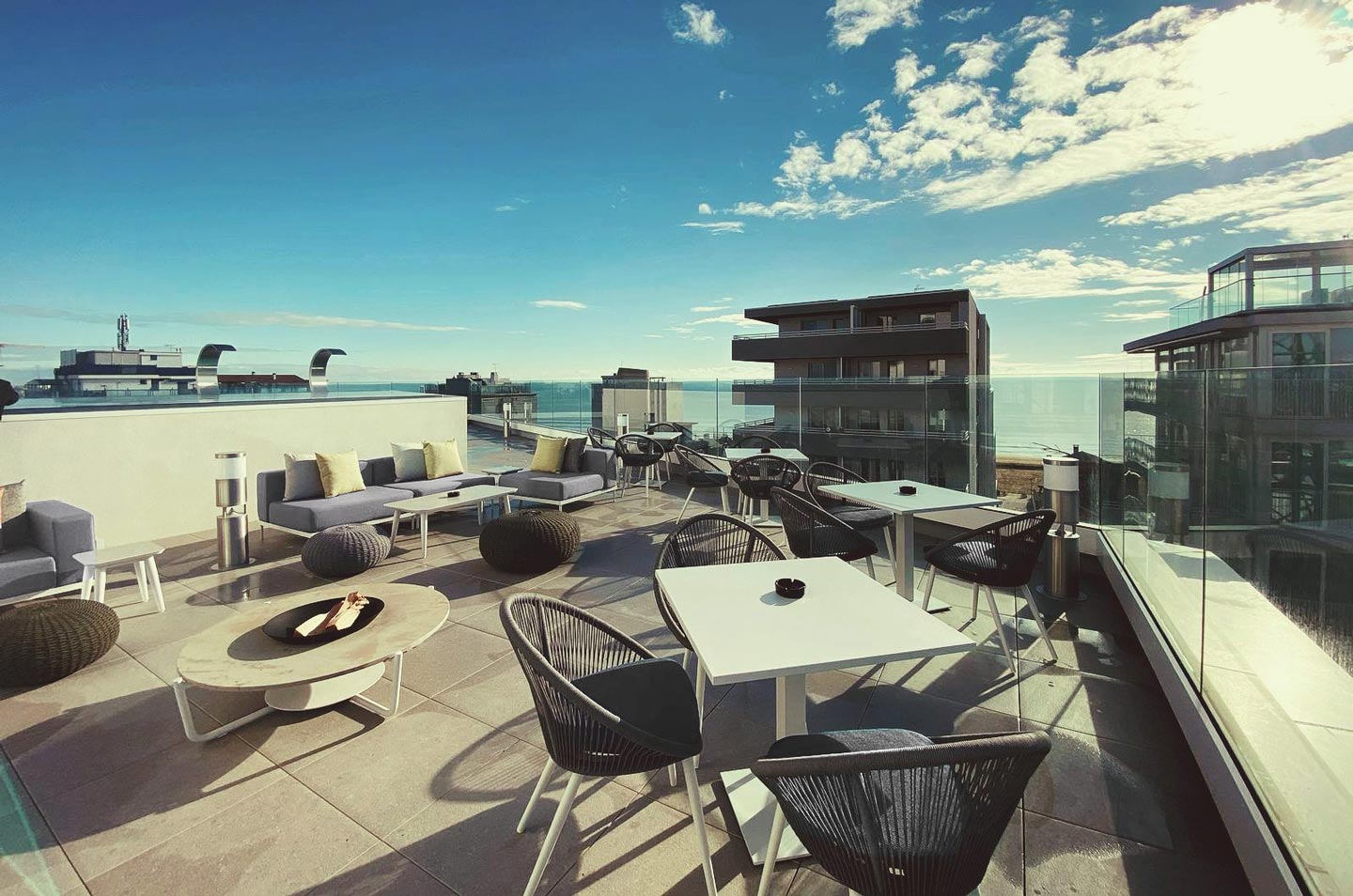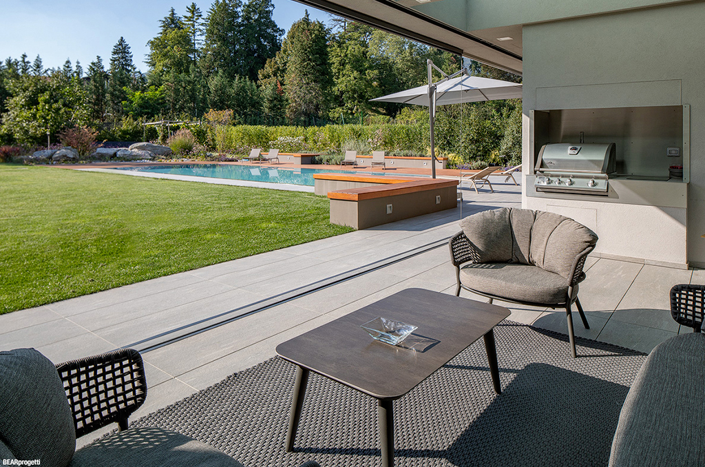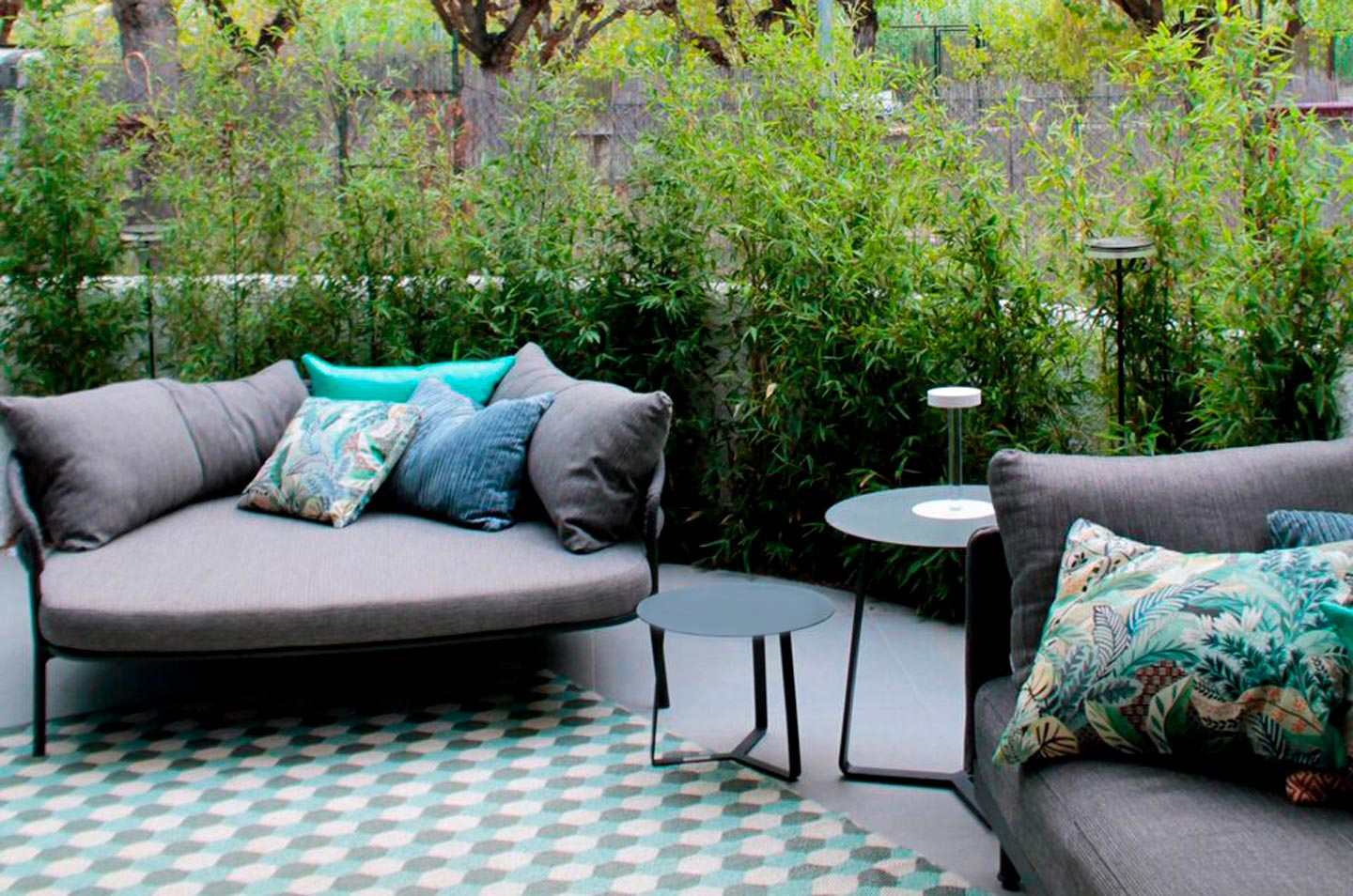 The large living areas of the terraces, on the other hand, are furnished with a mix of Moon alu seats with fabrics in soft, sober and refined colors.