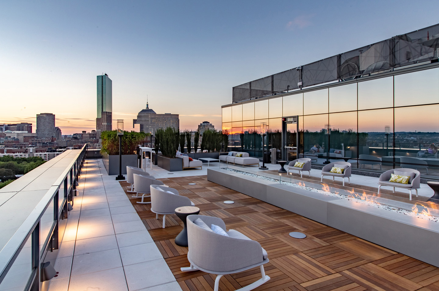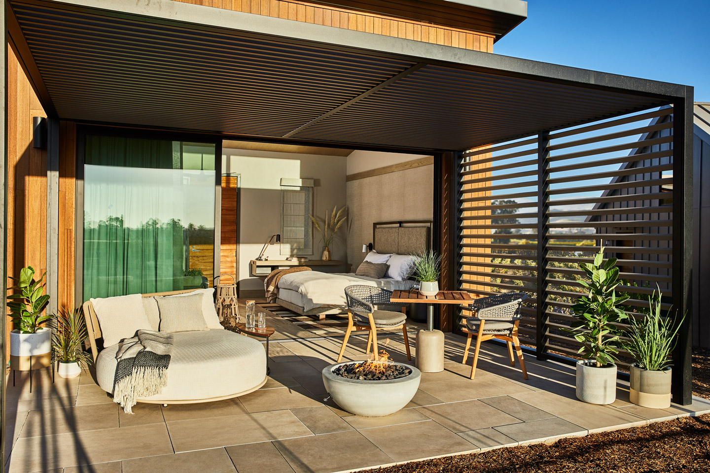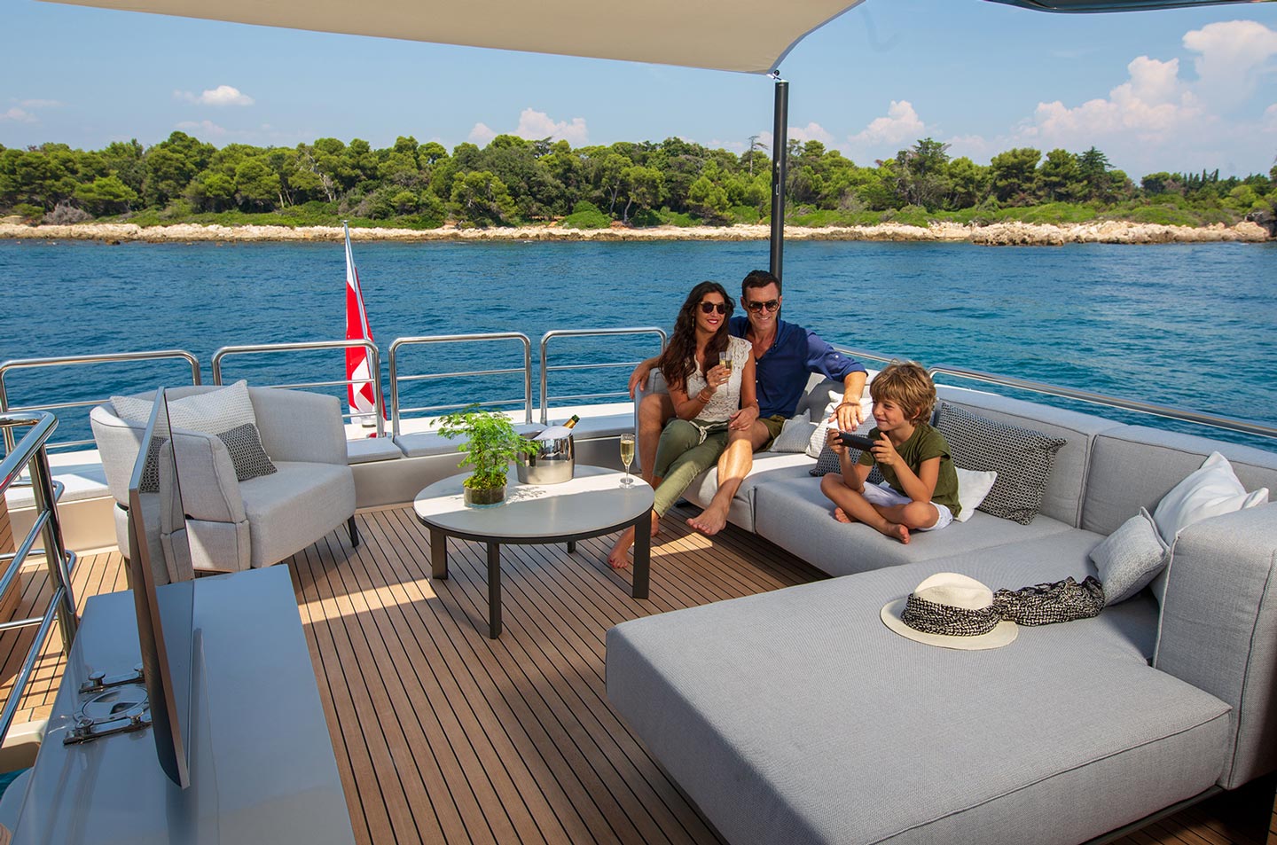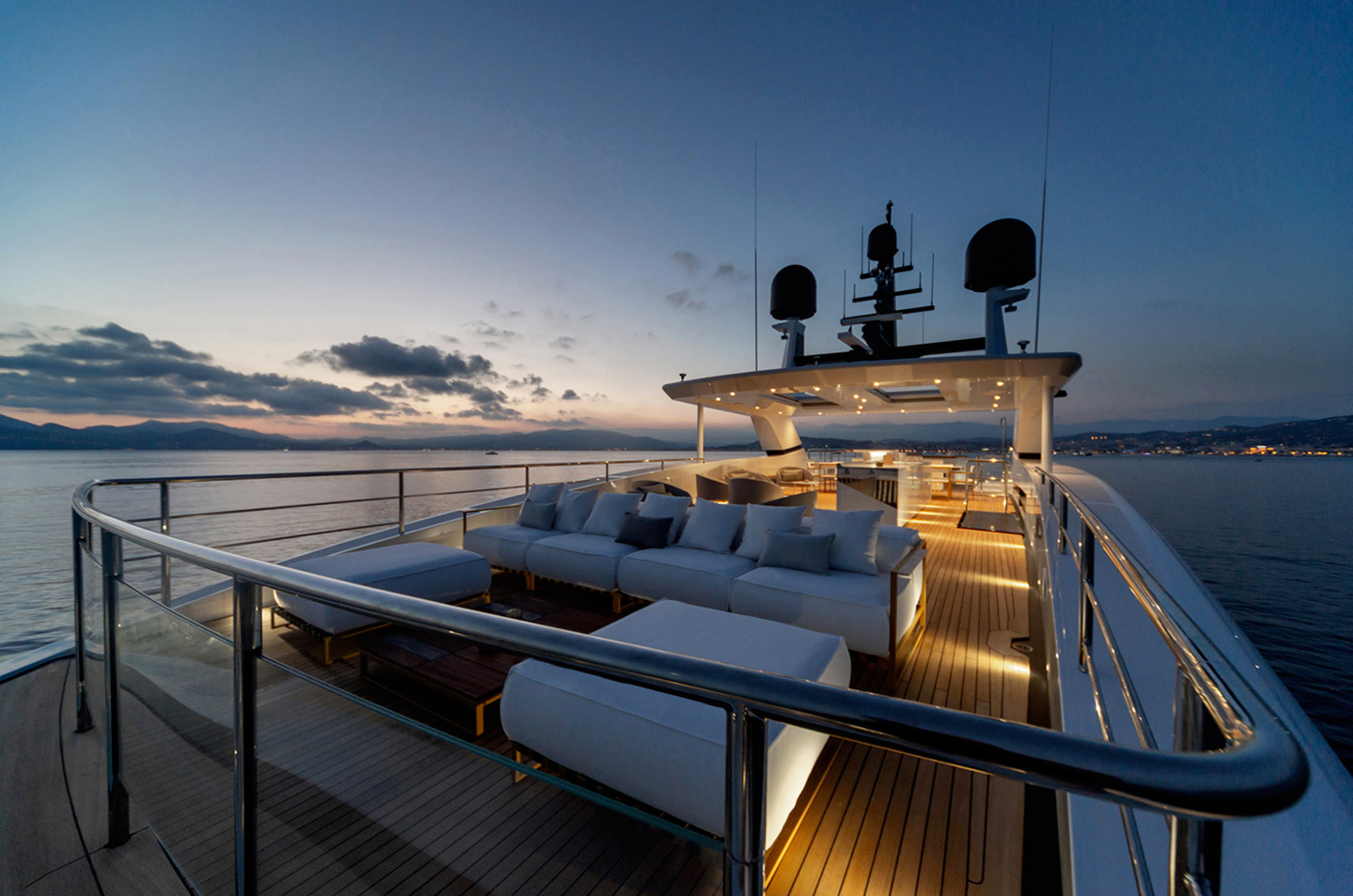 The large living areas of the terraces, on the other hand, are furnished with a mix of Moon alu seats with fabrics in soft, sober and refined colors.