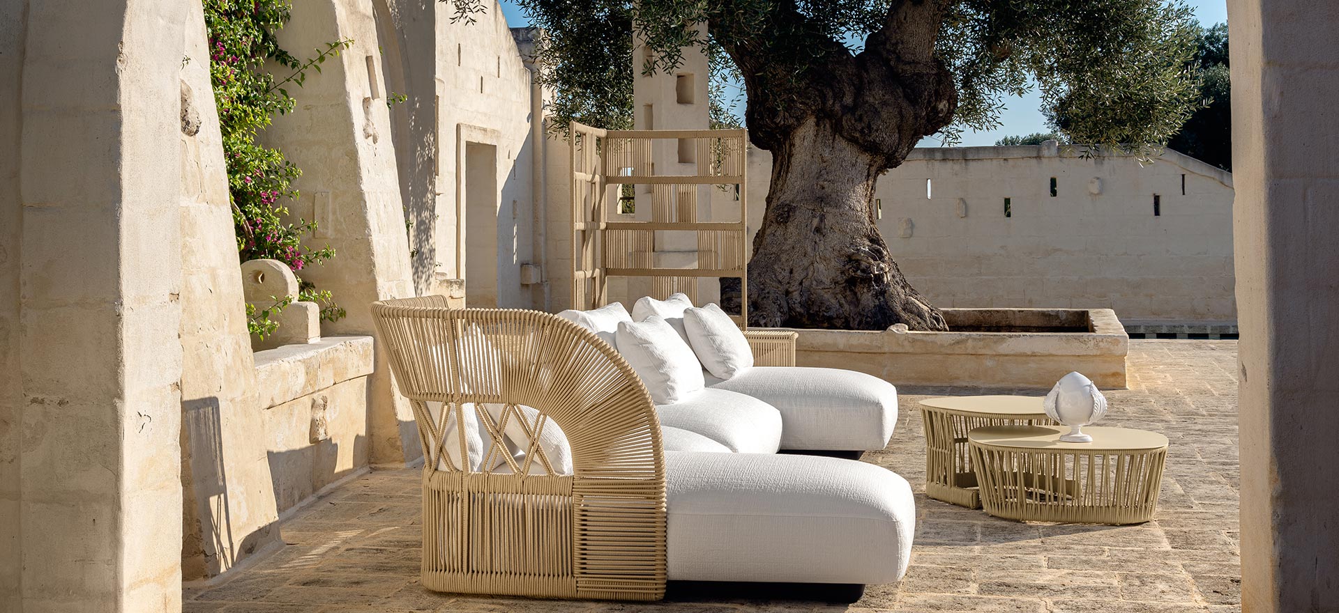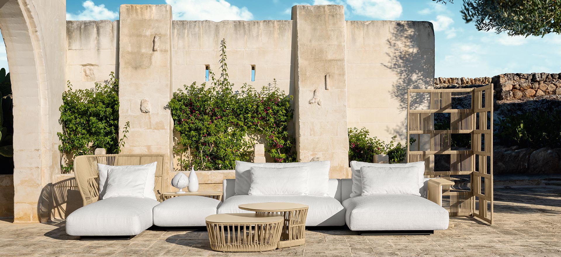 Cliff Dèco enriches the already wide Cliff family and it is the result of a deep projectual research for a collection, that wink at the indoor furnitures. An elegant and modern sofa, characterised by its timeless design. It features sumptuously deep and inviting cushions, fine colour palettes and hand-woven backs and armrests. Cliff Déco is synonymous of great versatility, thanks to the modularity of the structures makes it possible to arrange the elements in absolute freedom, generating infinite possible combinations.
