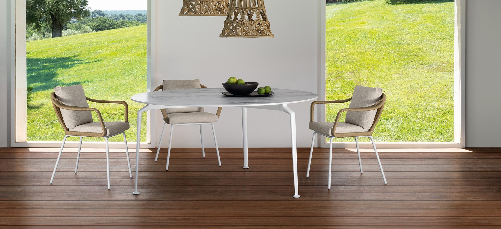 The collection is characterized by the use of an aluminium base with die-cast aluminium feet. Die-casting process allows to design accurately the foot, that becomes a distinctive element of this range and improves the aesthetic impact of sofas and tables.