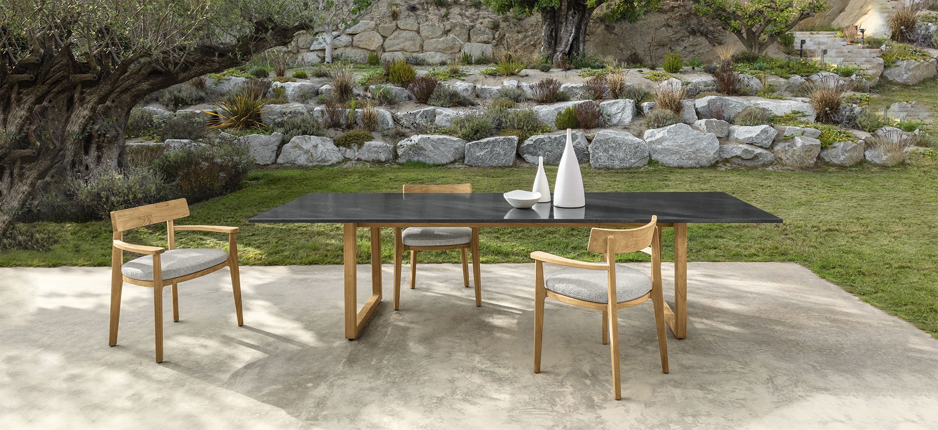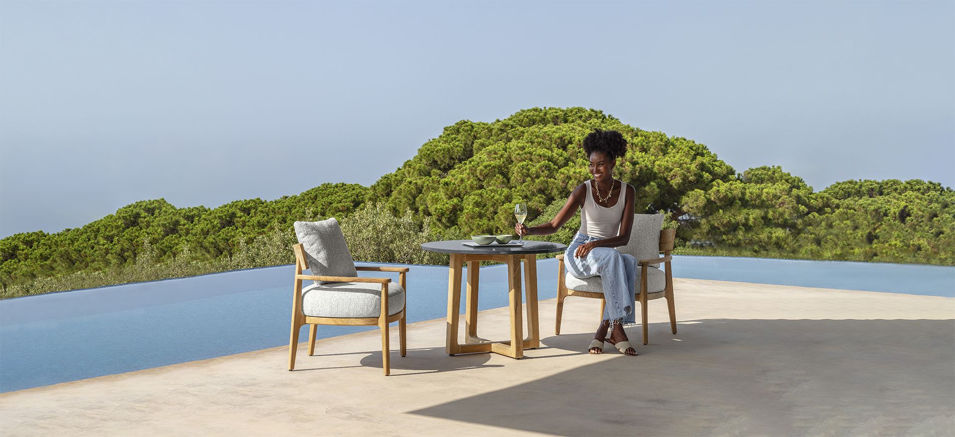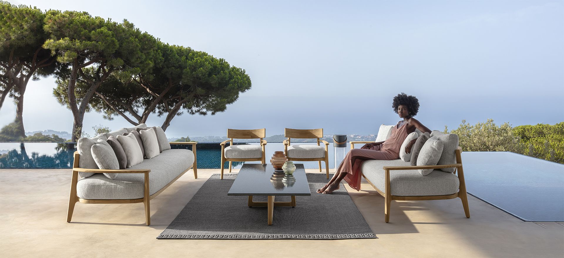 As the name suggests, Ever is the collection created by Christophe Pillet, who confirms his mastery of timeless elegance, specifically to win the relentless pursuit of trends, able to adapt to environments and eras while remaining true to itself. The essential lines, the roundness of the cushions make up elements of evergreen furniture that look to the future of outdoor living treasuring the great classics of the past. Streamlined compositions, and therefore versatile, in shapes and colors, oriented towards neutral shades inspired by the natural environment, an example par excellence of cyclicality and durability.