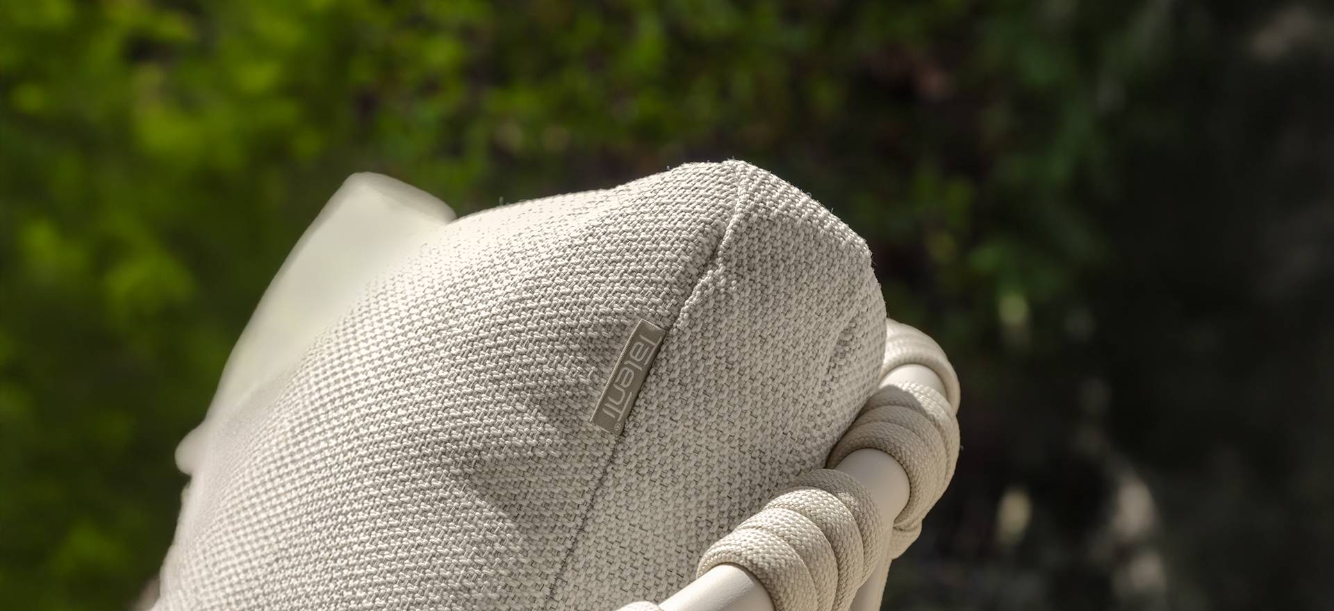 The Iris collection celebrates the blend of functionality and modern design, combining innovative materials and precise details to create unique and welcoming outdoor furniture. The woven seats, paired with soft padded cushions, evoke a sense of warmth and sophistication, perfect for those seeking a relaxing and stylish outdoor environment.