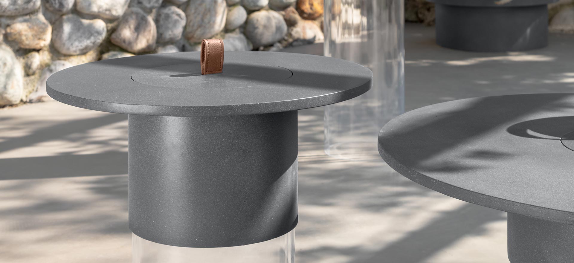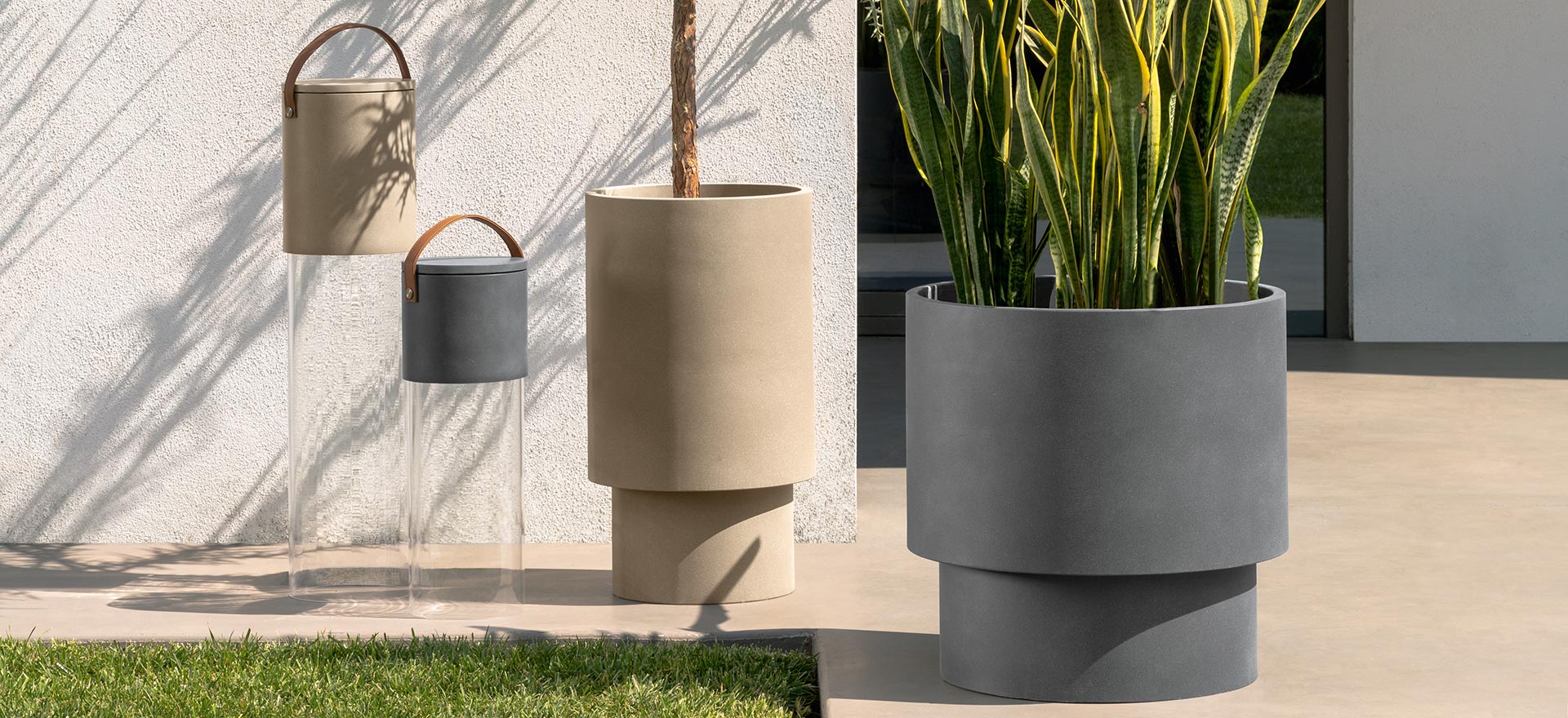 A cylinder made in Eco-cement characterizes the vases – available in two sizes.