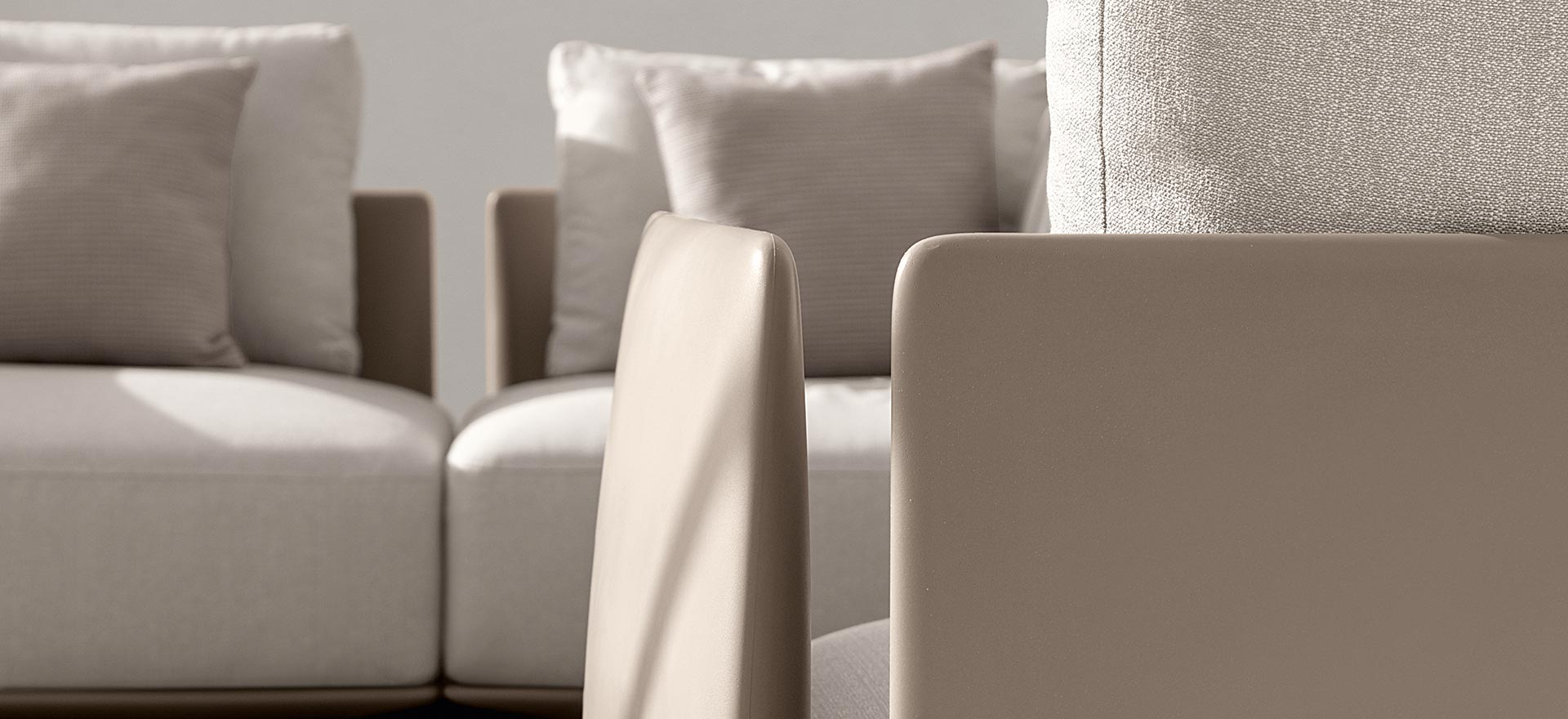 A new collection is born from elegant, light and marked geometric shapes and it offers maximum comfort. The main feature of the Malè collection is its low seat, a rigid and squared structure, just like a shell, made in rotomoulding, for a versatility that is elevated thanks to the upholstery of the padded furniture.