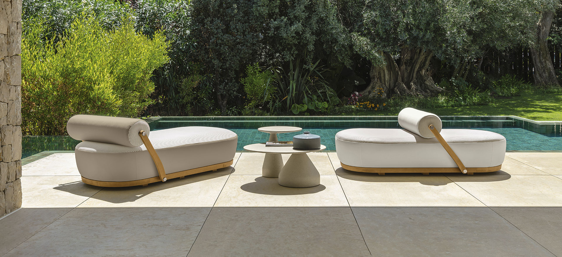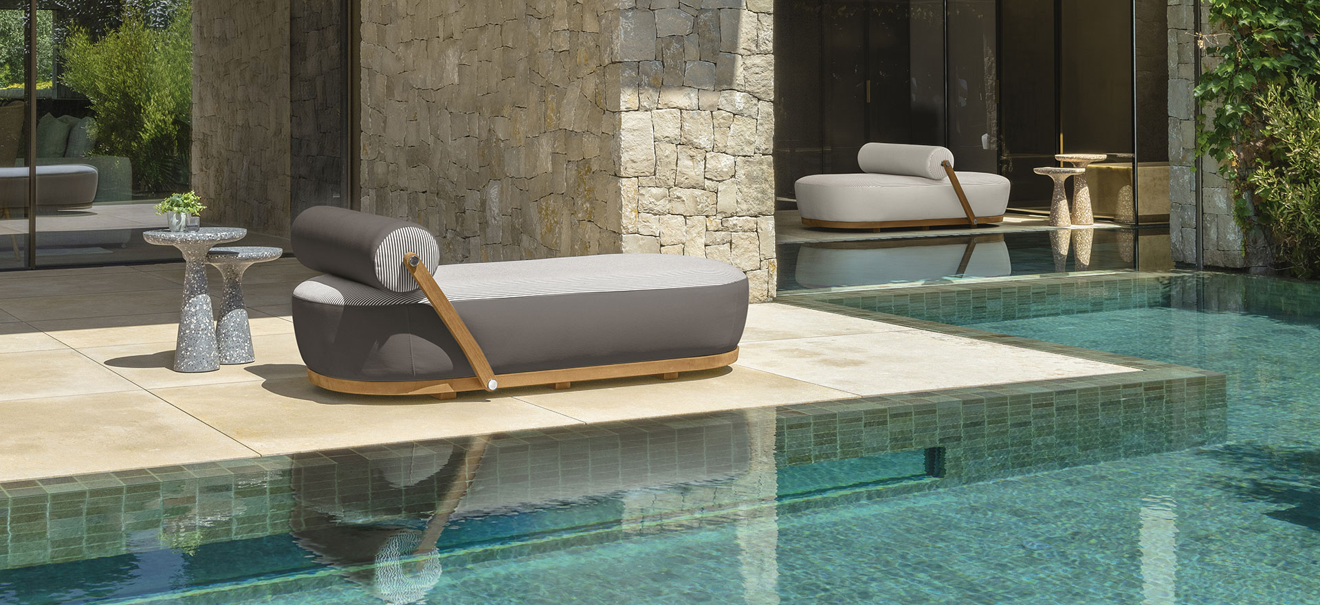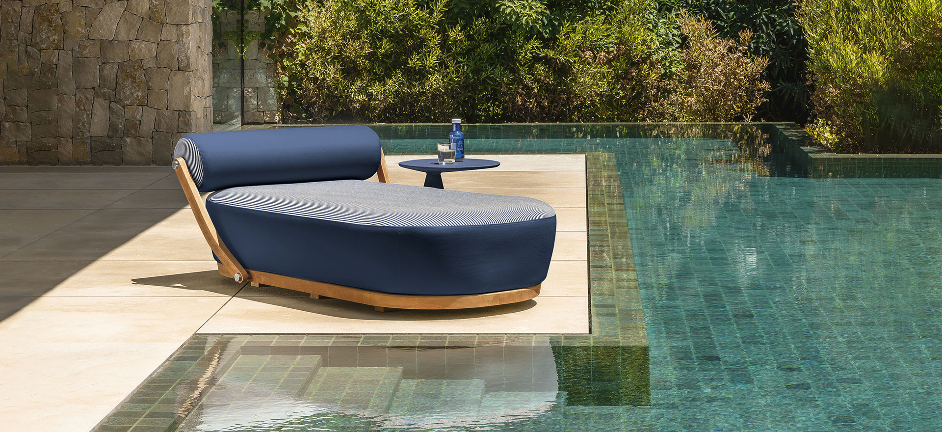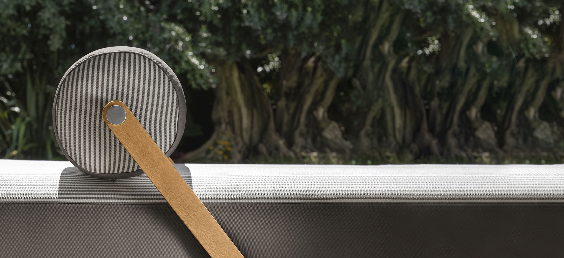 Compact and modern, Nami is the versatile sunbed that enriches any relaxation space. With its iconic mobile headrest that turns into an elegant central armrest, it reveals an absolute novelty that can adapt to multiple design contexts, always being the protagonist. Unique in its kind, it was born from the eclectic mind of Teresa Sapey, Italian designer whose style is forged by the most modern and creative Iberian thought, but strongly linked to the Talenti tradition thanks to the use of solid materials such as aluminum and natural wood, that distinguish the production, ensuring quality finishes.