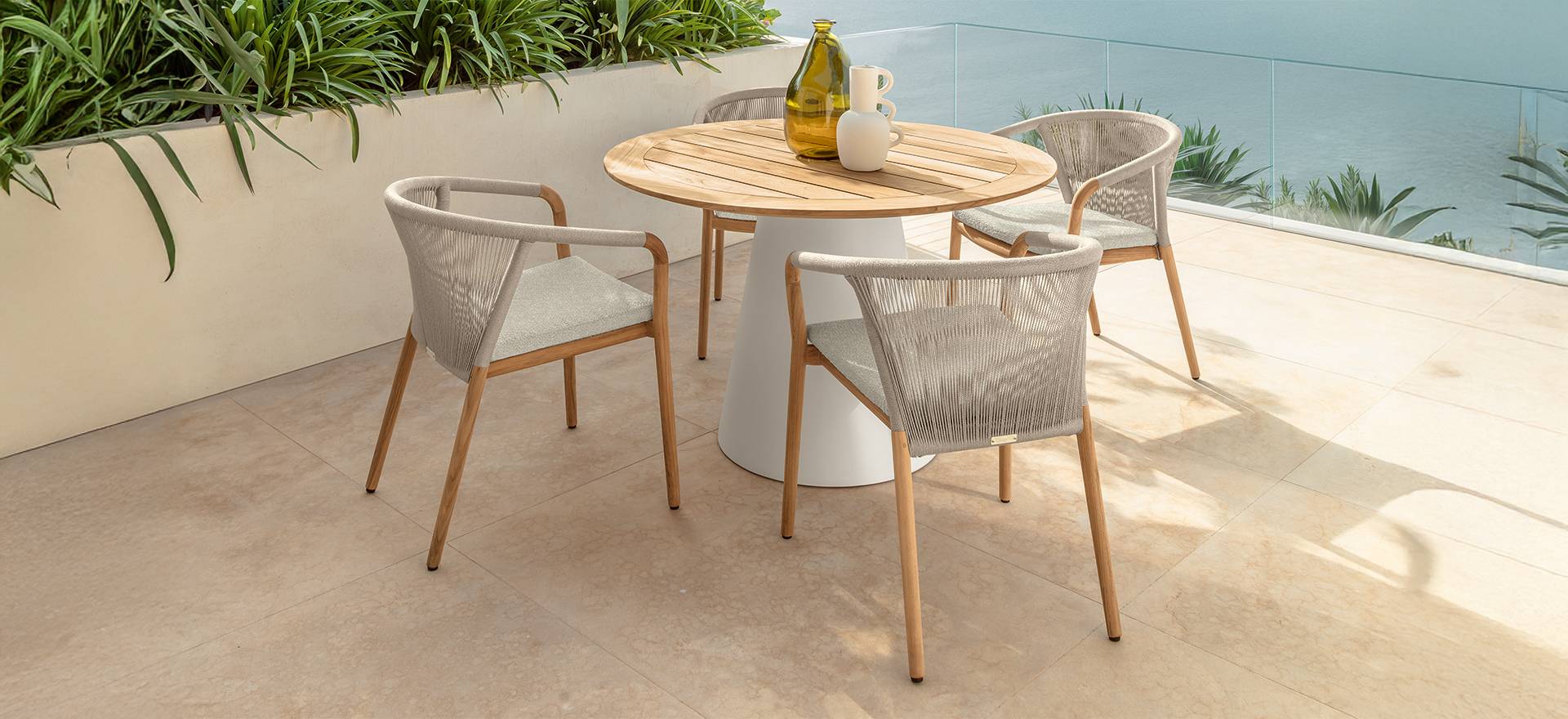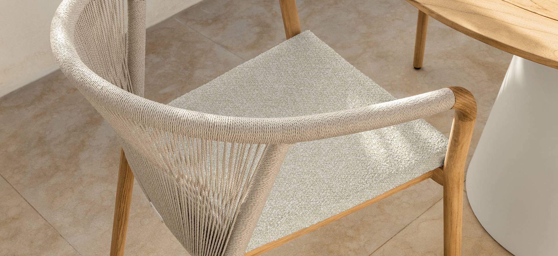 The Parker collection by Talenti Outdoor Living combines the elegance of teak with the durability of nautical ropes. With its essential design, Parker offers a modern and refined style, perfect for outdoor spaces. The teak tubular structures provide strength, while the nautical ropes add a touch of lightness and modernity, ensuring durability and comfort throughout every season.