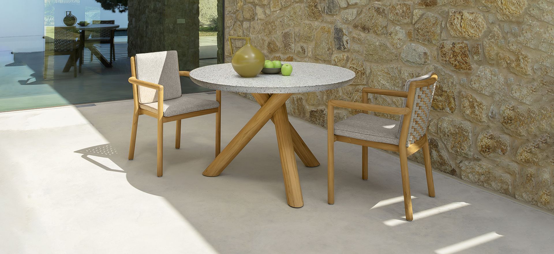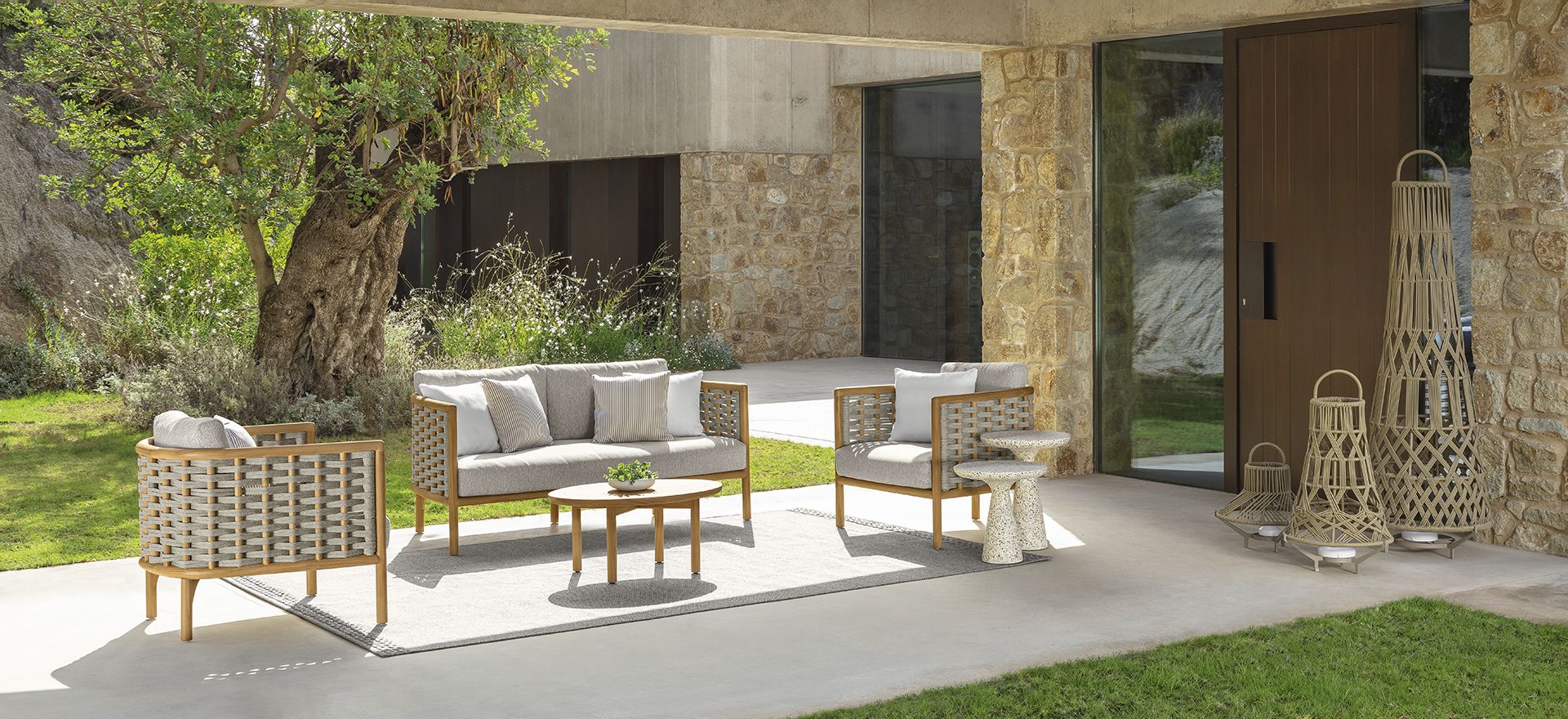 Directly from the living rooms in English style, a collection that communicates with the natural environment but does not want to give up the composure typical of indoor furniture. Prichi consists of a living set and a cozy chic dining, characterized by the use of materials that are well suited to a wide range of architectures. The coffee tops with an essential and modern cut contrast with the elaborate weave of ropes and wood that develops on the backs and armrests, making the seats of this collection sophisticated furnishing elements.