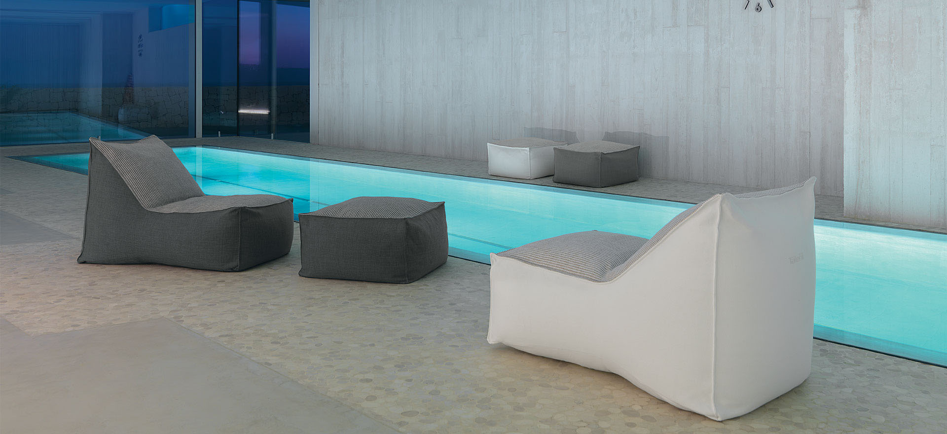 The perfect balance between relax and style. In one word? Sacco. Sacco is a luxury furniture that is functional and at the same time has great personality. Sacco is a collection formulated in materials and finishes that will last over the time. It can be placed at the edge of a swimming pool area or in a garden, it can be 1 seat or 2 seater, everybody will love it! A 100% made in Italy product. All the materials used for this collection are carefully selected to achieve a perfect balance between aesthetics, functionality and comfort. Sacco padding is made of Quick dry foam and polystyrene spheres, the fabric is Sunbrella, well knowed to be specifically developed for outdoor use. Thanks to its removable cover it is easy to wash, water resistant and UV-resistant. The variety of colors enable you to create trendy settings on the edge of a swimming pool, charming spots in the garden or elegant corners that lovely fit with the landscape.