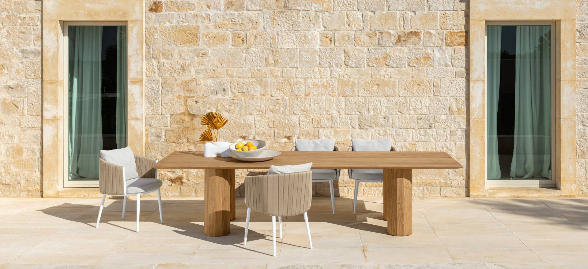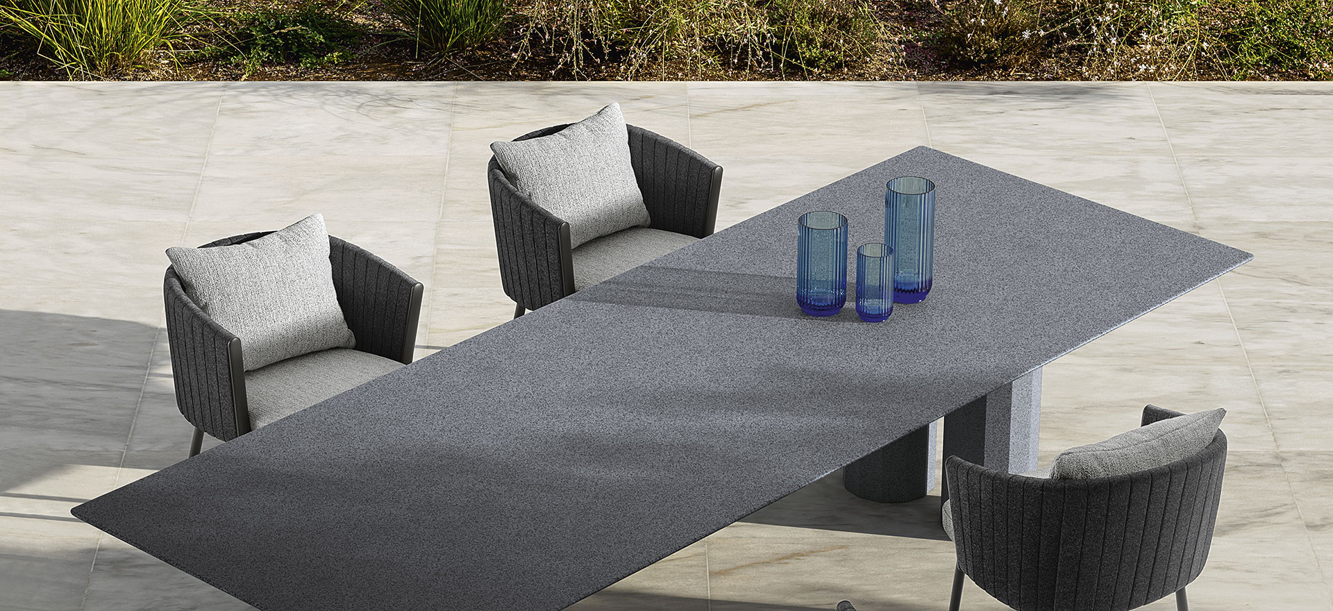 The Salinas collection is inspired by the natural region of Ibiza. A project in which we wanted to bring the refinement typical of the indoor world outdoors, increasingly shortening the distance between the two environments and bringing them into continuity. The collection consists of sofas and armchairs in which the textile component is predominant. The padded belt and the precious metal details, visible in the ends of the backrests, give the collection charm and timeless elegance.