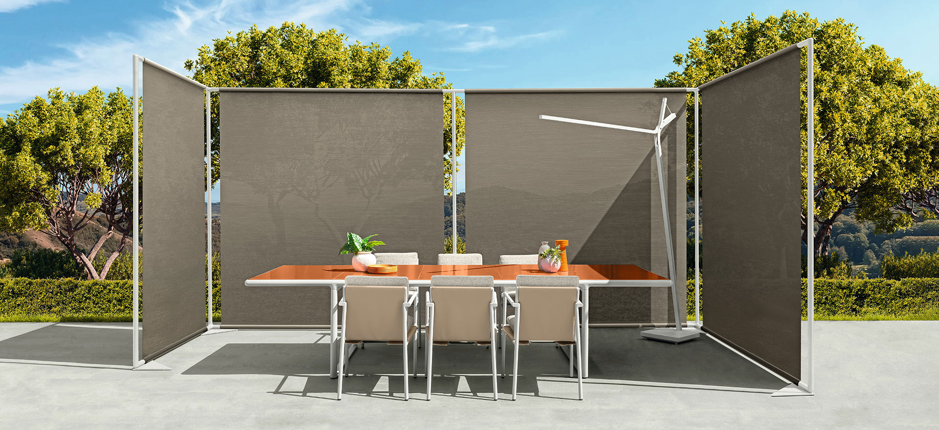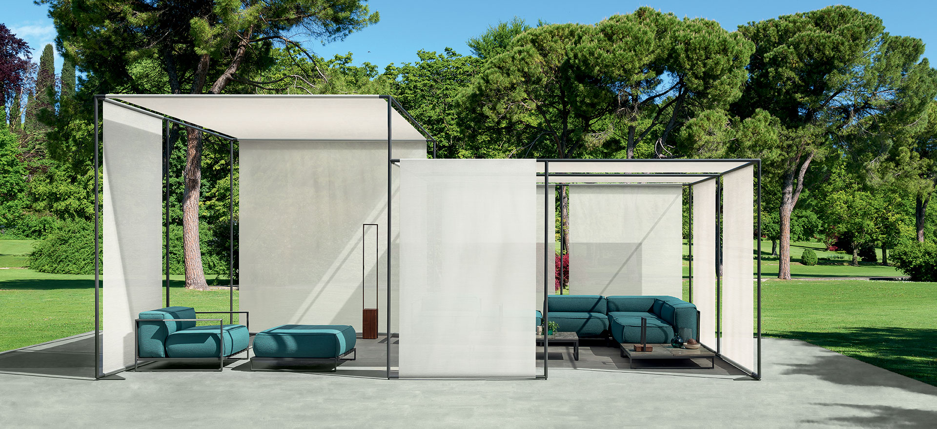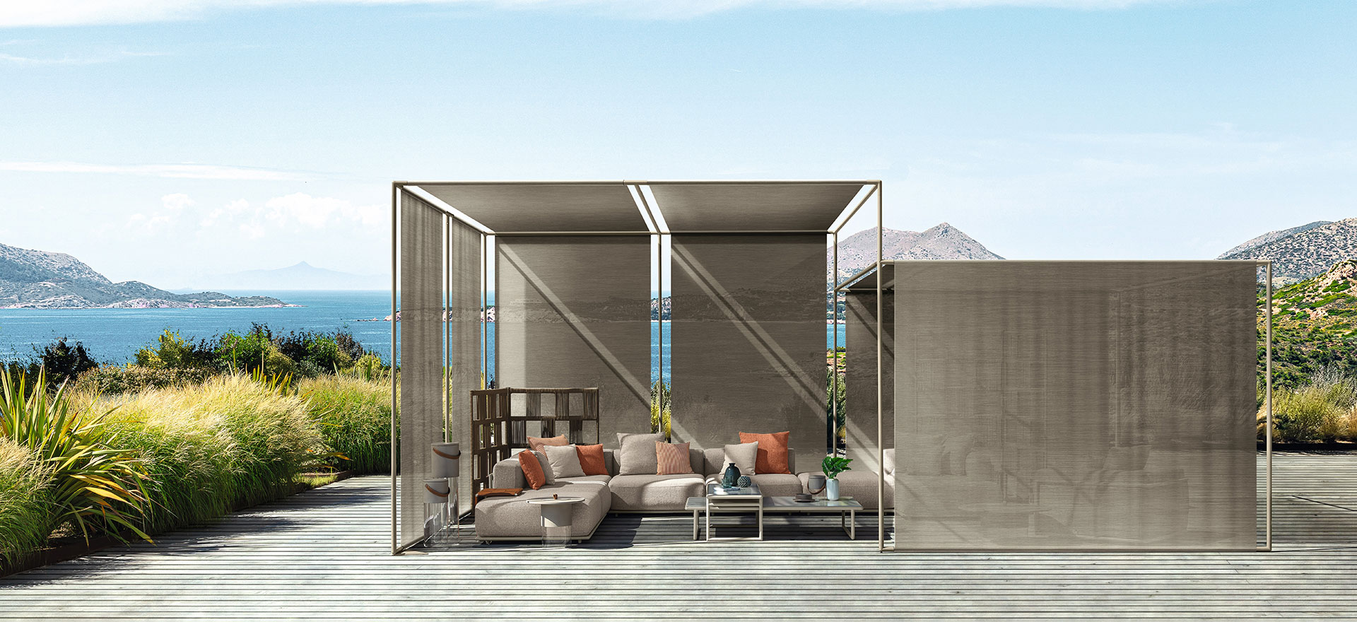 An accessory capable of modulating the spaces of your garden with great flexibility, creating areas sheltered from the sun, full of charm and elegance. Skyline is the line that gives intimacy to the outdoor living room and gracefully matches the other collections. A real must for an oasis of relaxation in outdoor spaces.