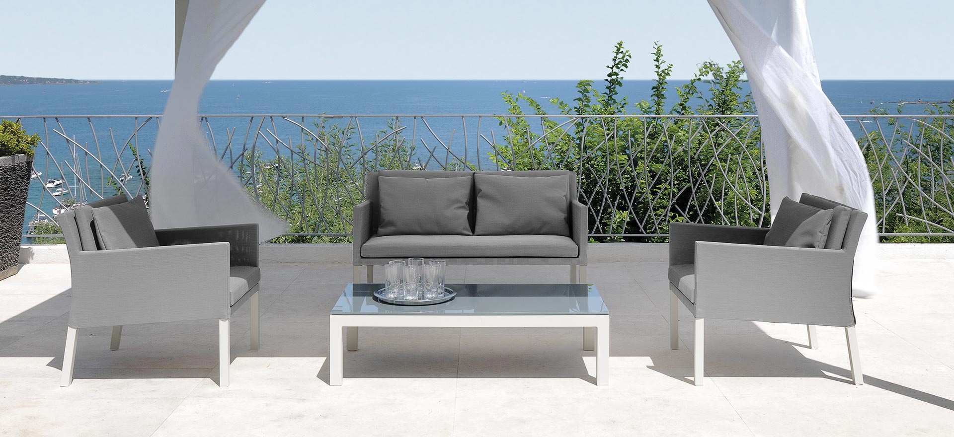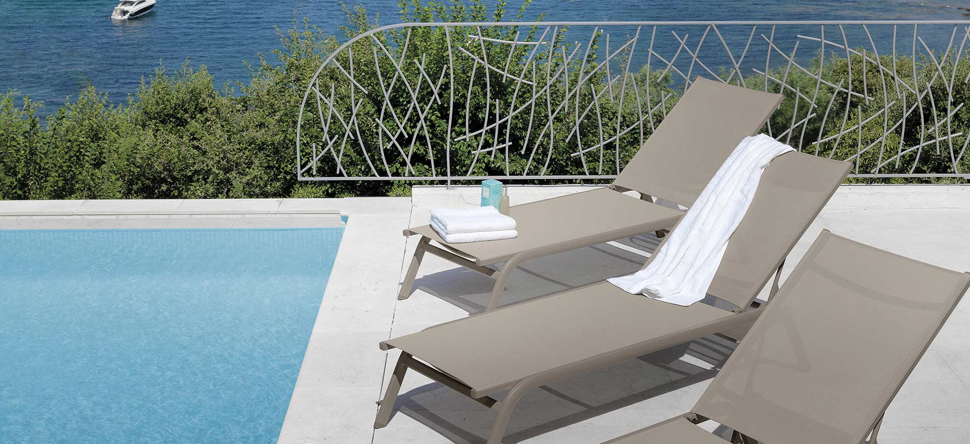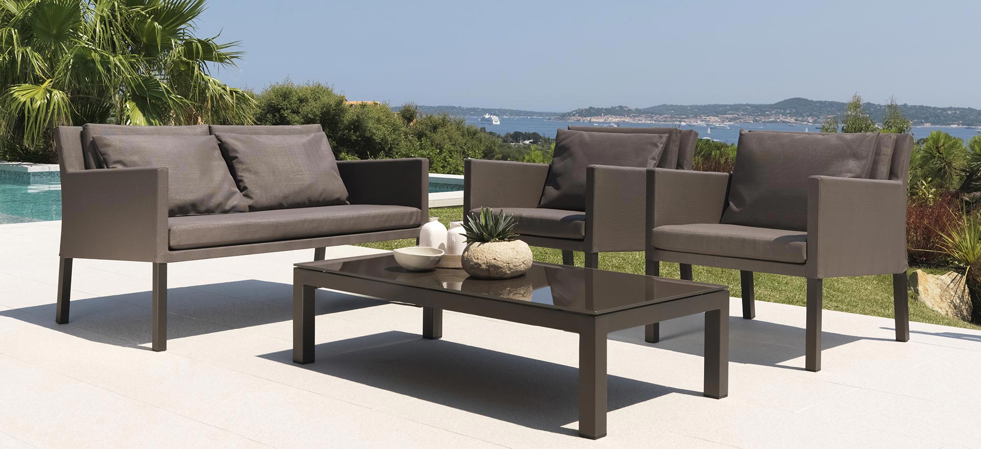 For those who have little spaces but do not want to renounce to a nice and comfortable lounge with the right character. Stackable sunbeds and removable cushions, easy to wash and weather resistant.