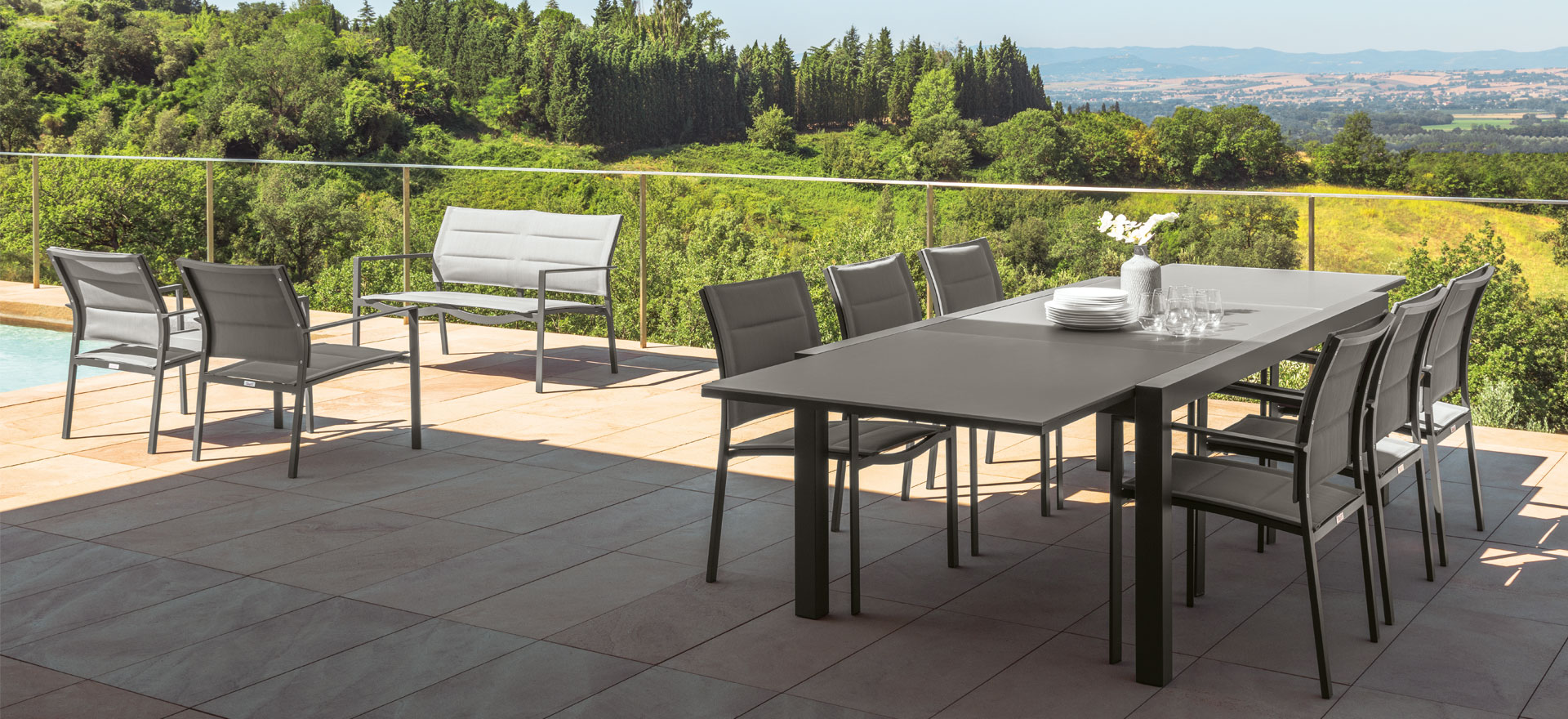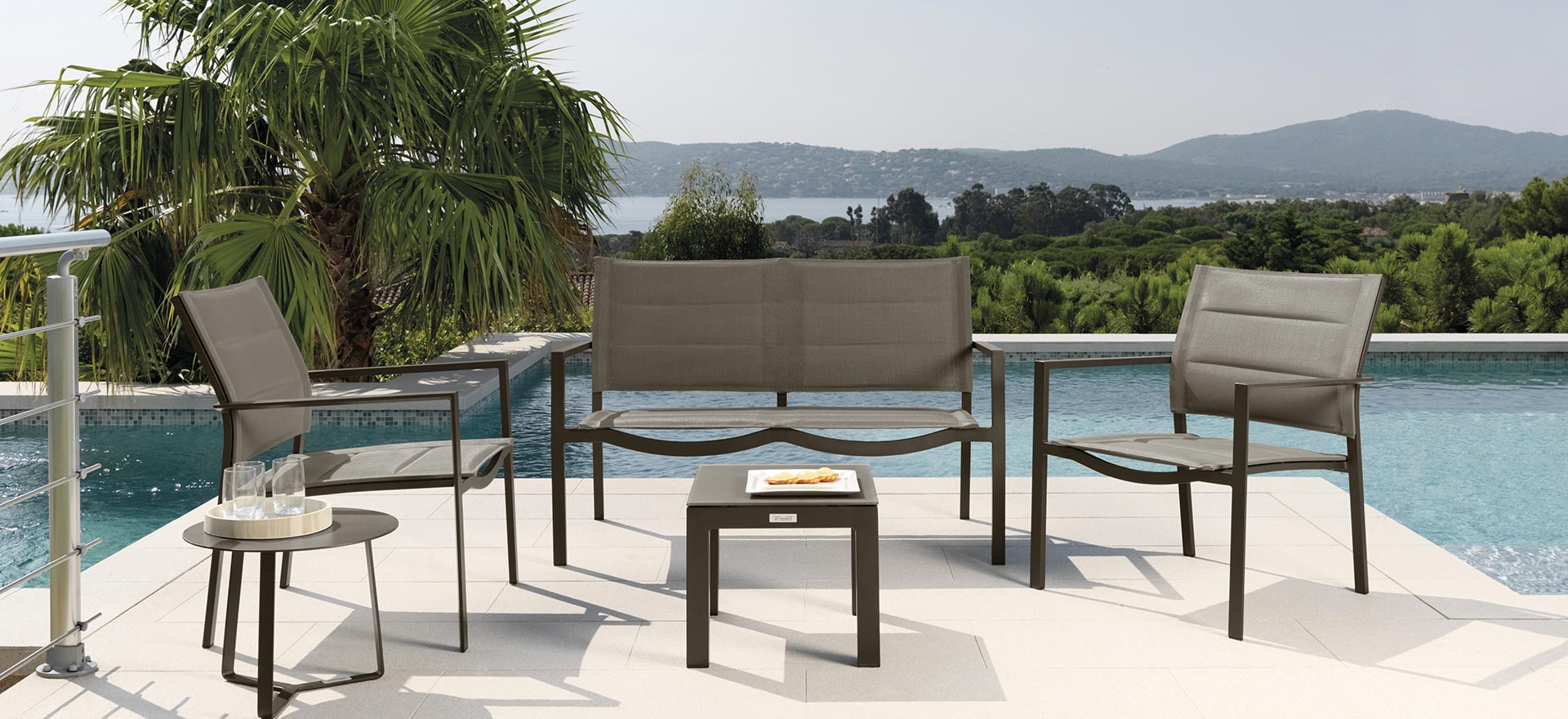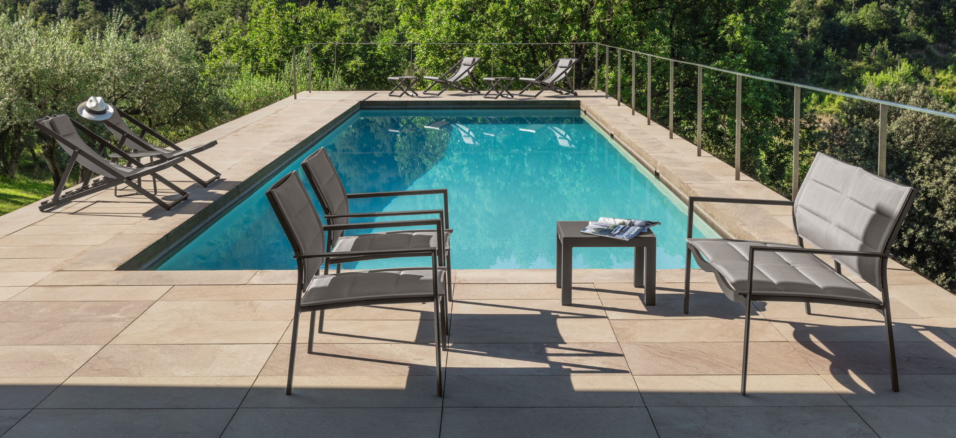 One of the most complete collections of the Talenti brand. For living, dining and relaxation; three accessories to make the outdoor impeccable. Practicality and style in every element, from the sofas in textilene, to the aluminium tables and sunbeds for your poolside.
