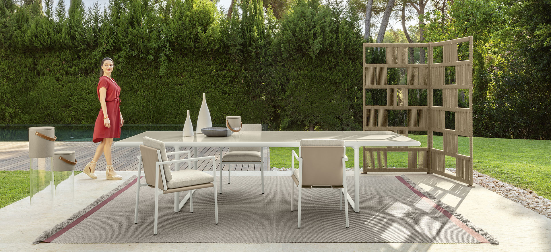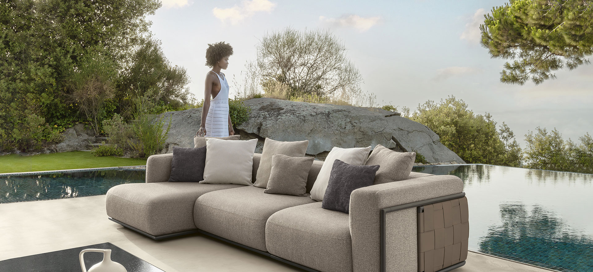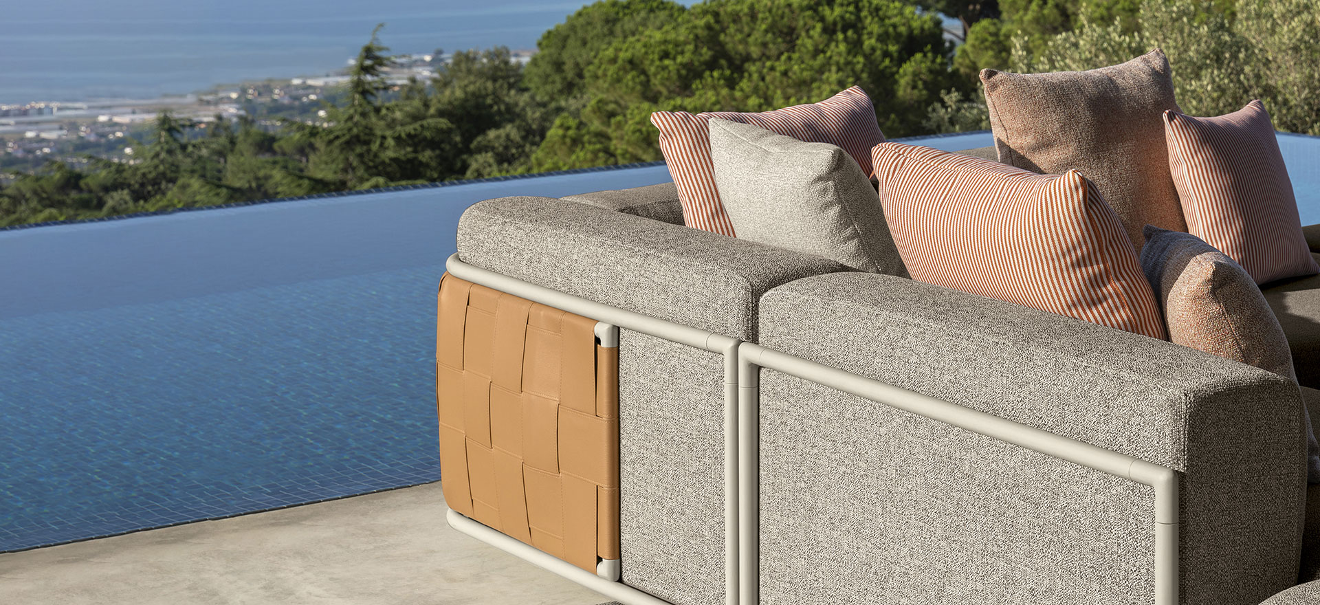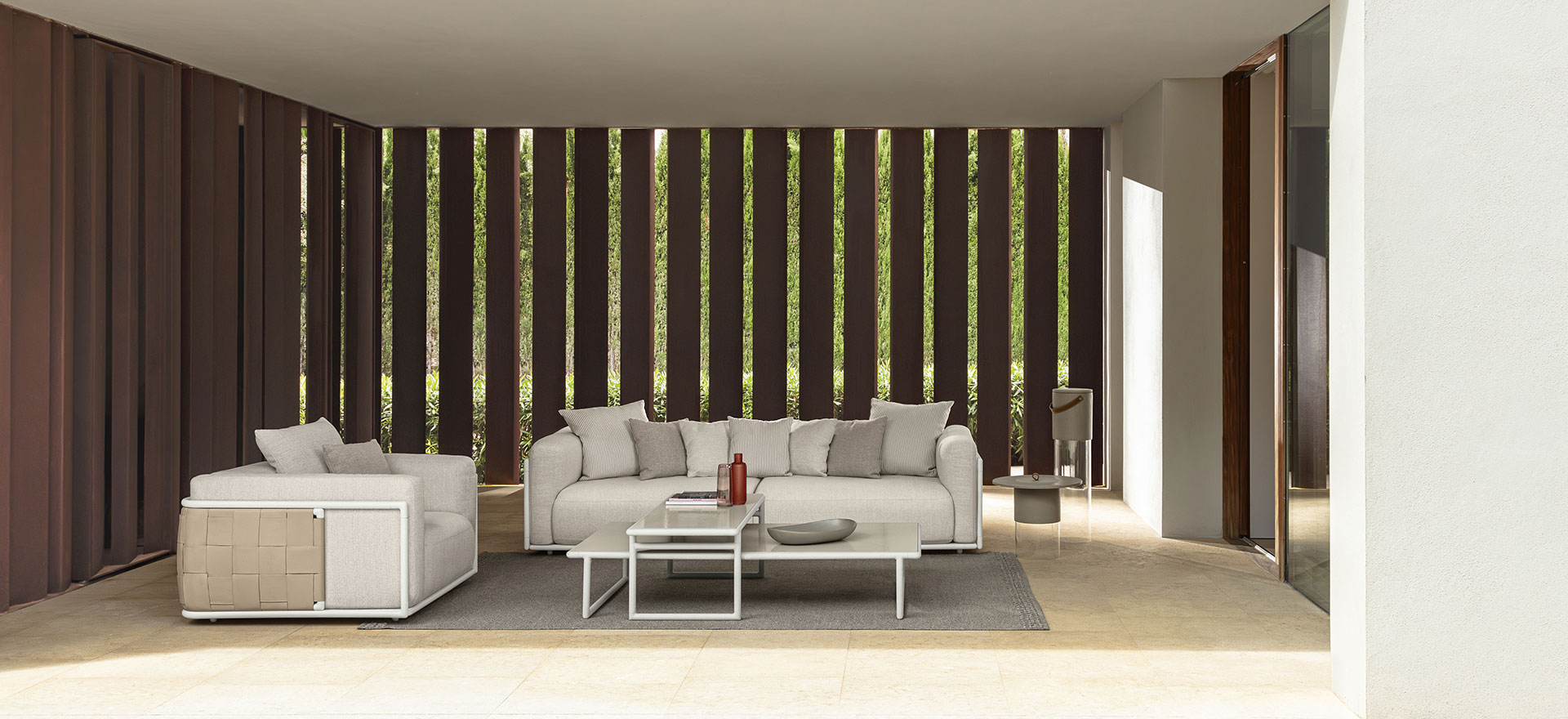 From the search for elegance that distinguishes the production of the architect Carlo Colombo was born Tressé, a collection that radiates both solidity and comfort. Everything revolves around the study of the cube as a primordial element in which to find order and to elevate through fine finishes. These include the sophisticated interweaving of eco-leather bands that embraces the entire perimeter of the seats and that stands as a distinctive element of the entire collection, declined in color variations that can adapt to any environment ranging from cold gray silk, to the most intense and decisive mud, up to stand out with the warm land of Siena.
