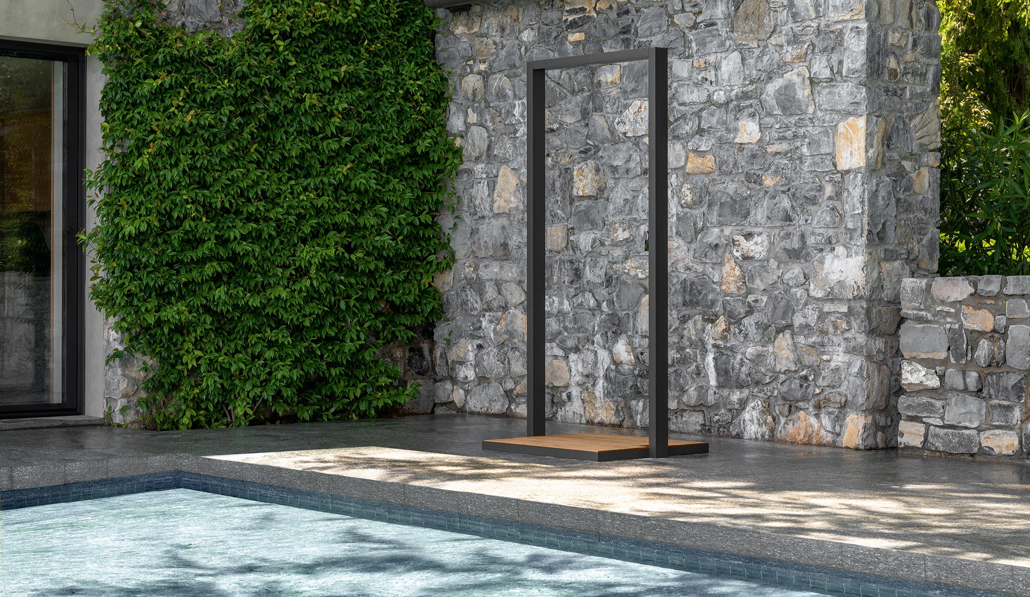 Showergate is a piece of furniture that matches perfectly with the outdoor furniture of the Talenti collections. With this element, designer Marco Acerbis wanted to create a functional product coveying, at the same time, the pleasant sensation of a refreshing shower with a design object of great visual impact.
