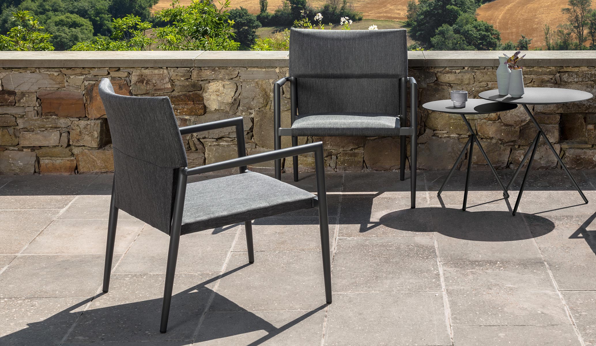 With its large seat, the living armchair of the Adam collection is ideal for a moment of relaxation in your outdoor space. The aluminum structure and the seat in fabric make the product not only comfortable, but also weather resistant.