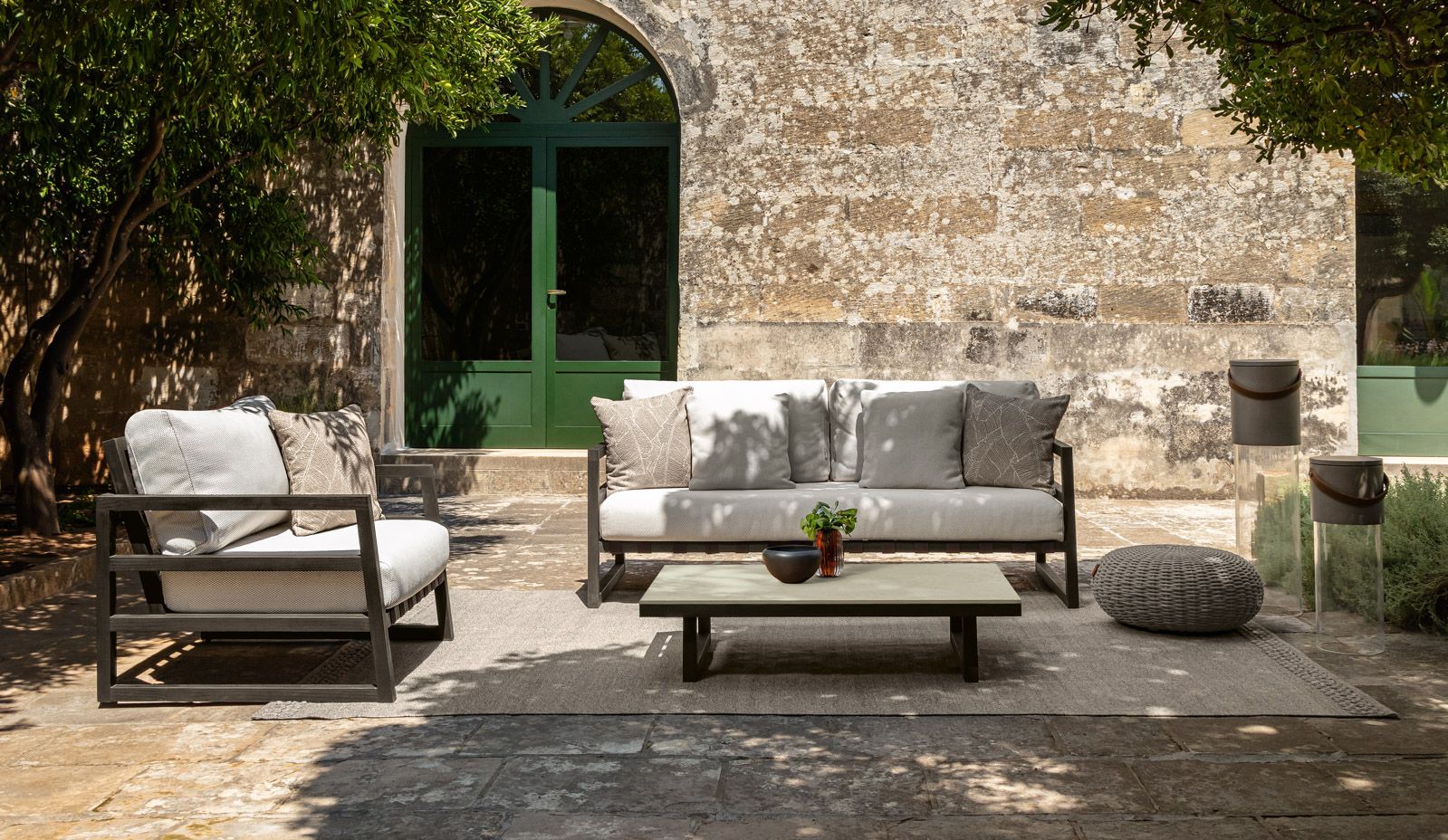The cushions, in removable fabric, are supported by synthetic belts. The padding is in quick-dry-foam which, together with the weather resistance of the materials, make the sofa perfect for your outdoor.