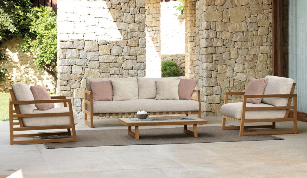 The Alabama Wood coffee table completes the outdoors, also thanks to the use of Iroko wood, in line with the concept that characterizes the collection. The wooden structure and the stoneware top allow you to create a contemporary yet welcoming outdoor space.