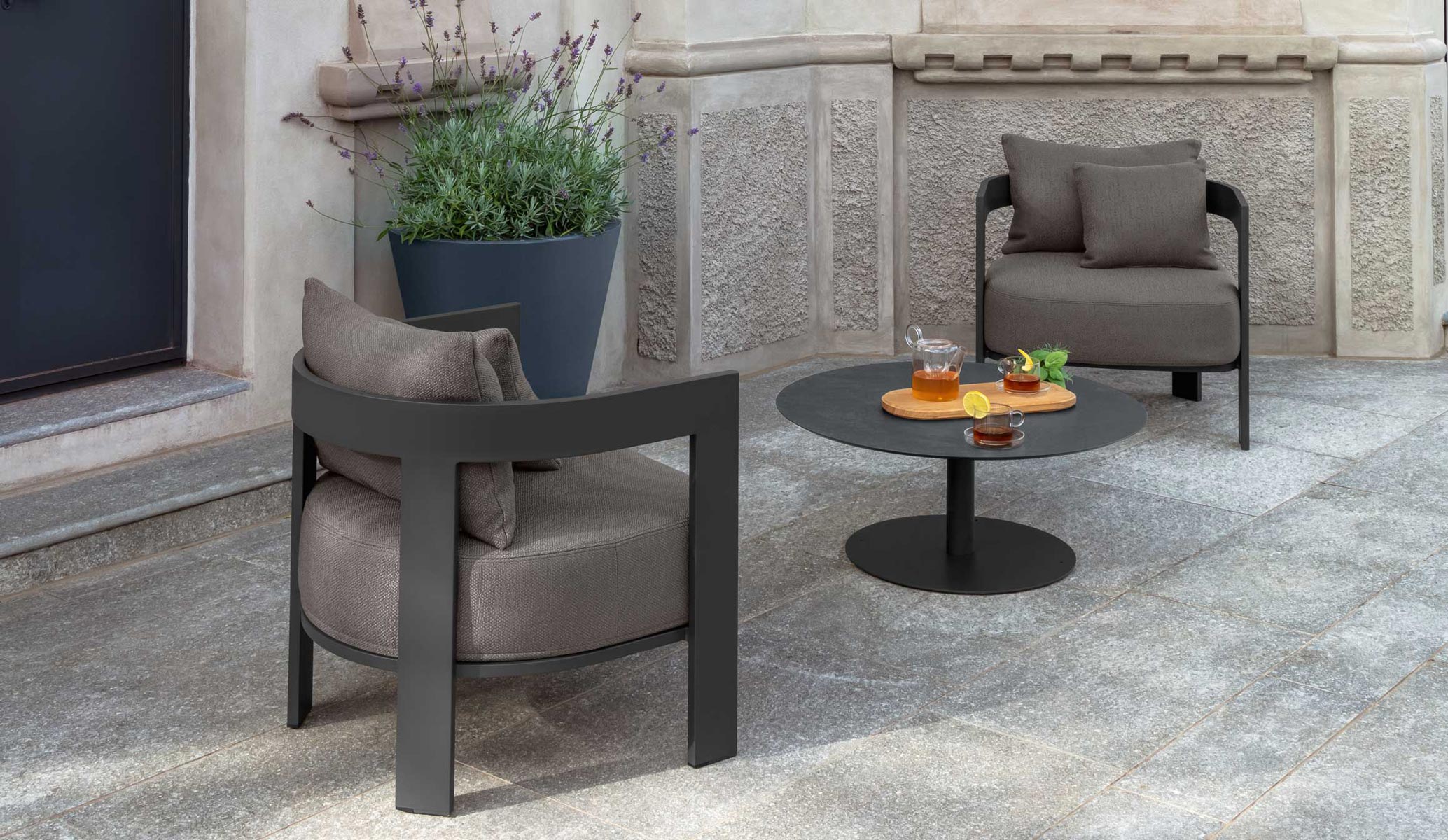 The great aesthetic research carried out by Ludovica and Roberto Palomba finds its maximum expression in the lounge armchair of the Argo Alu line. The enveloping and solid aluminium structure is combined with the comfort and the generous padding of the cushions that make this element perfect for spending relaxing and pleasant moments in your outdoor living space.