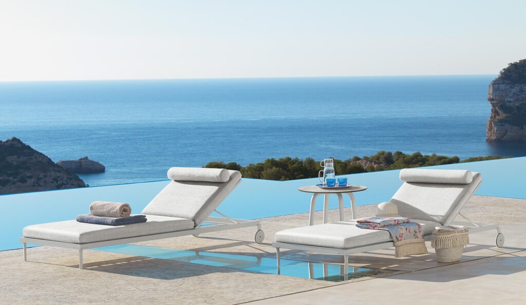 The double sunbed from the CleoSoft Alu collection offers the perfect way to enjoy a relaxing moment together. The spacious and welcoming double seating is made of weather-resistant, easy-to-clean fabric with quick-dry foam padding. Its aluminum frame ensures exceptional stability. The reclining backrest supports both seats, providing added comfort. Equipped with wheels for easy movement, the sunbed is also practical to store, thanks to its stackable design.