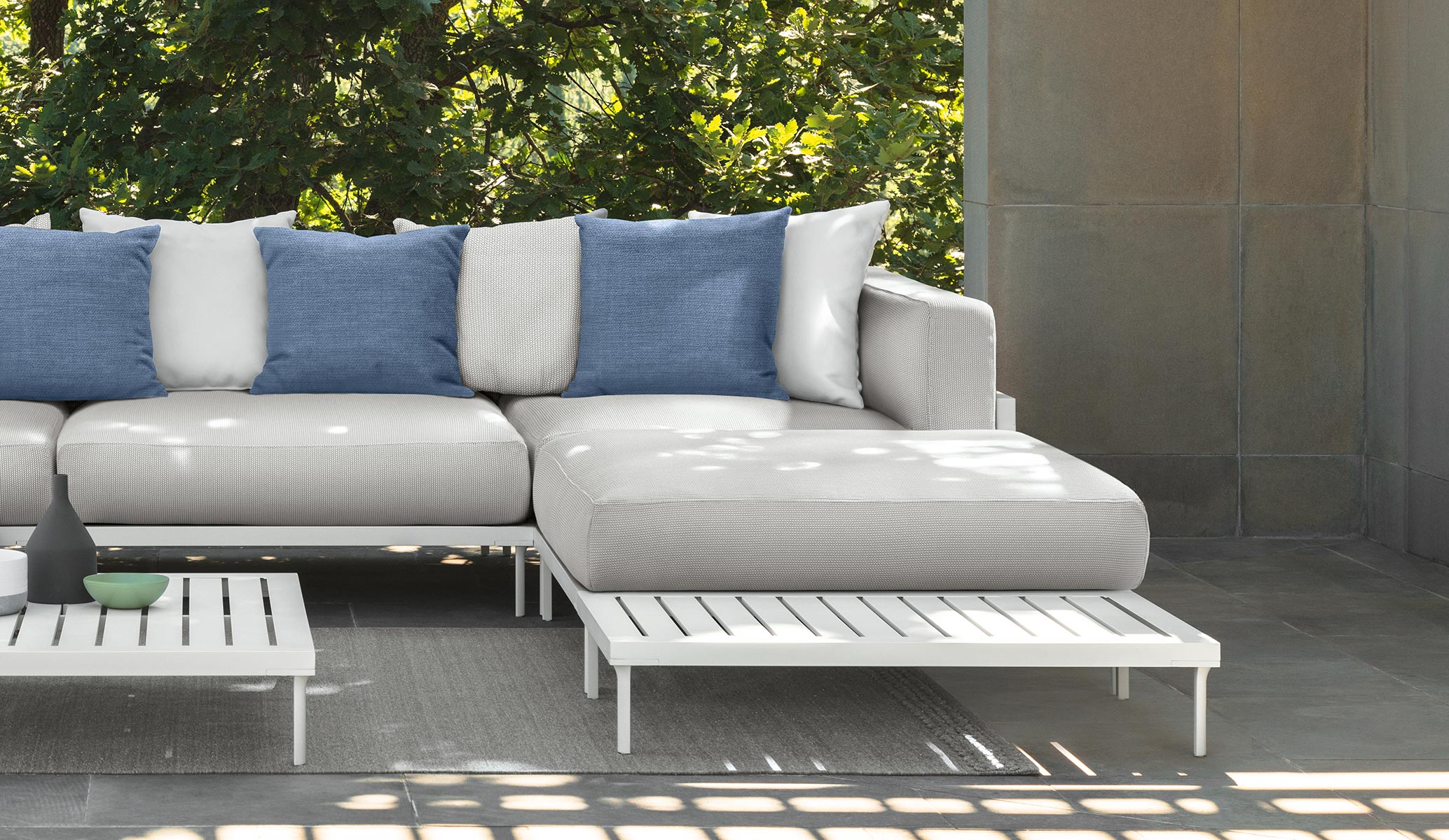 The outdoor pouf of the CleoSoft Alu collection is the perfect accessory for the modular sofa, sofas and armchair. Like the other living elements, the pouf was also conceived on an elegant game of simple and elegant geometries. The structure is in powder-coated aluminium and the cushions are in removable fabric, easy to wash and weather resistant. Quick dry foam padding.