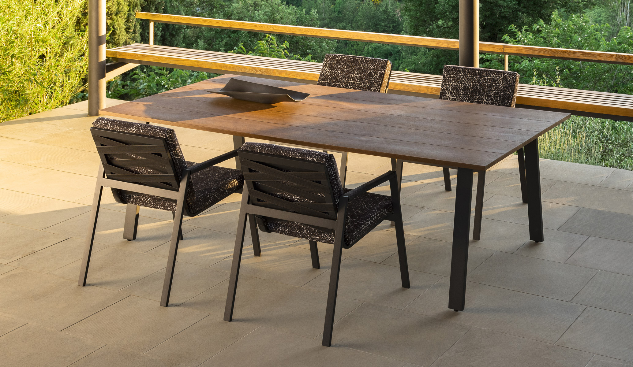 The Cottage dining armchair has a unique but functional shape. The aluminium frame, characterised by geometric lines, supports the cushions pdded with quick dry foam. The upholsetery, weather resistant, makes the product ideal to decorate your outdoor areas.
