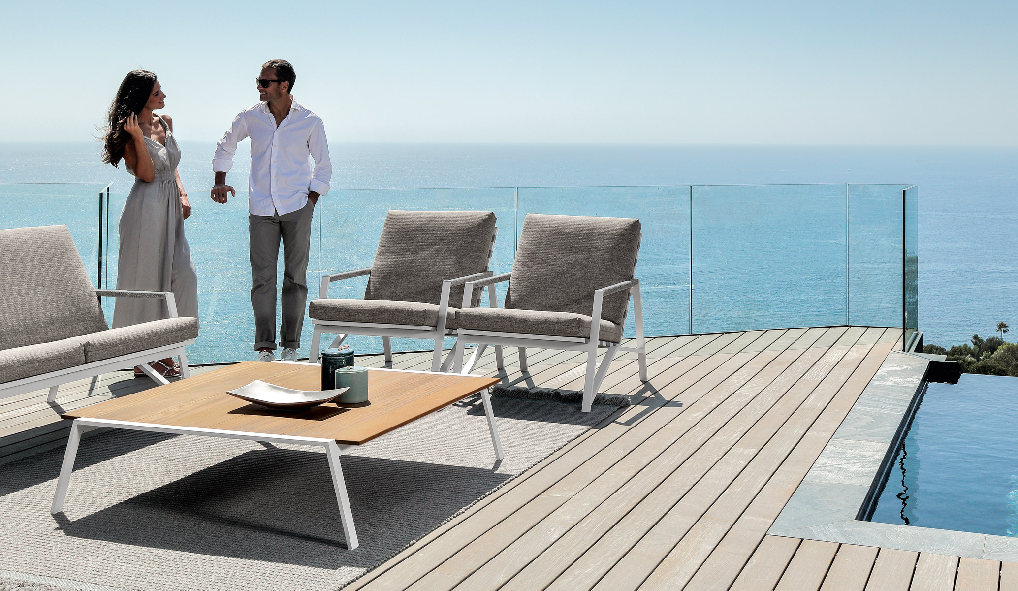 The outdoor living armchair of Cottage collection reminds to the Far West, where wide seats and high backrests were placed in the farm’s porch and ranches.