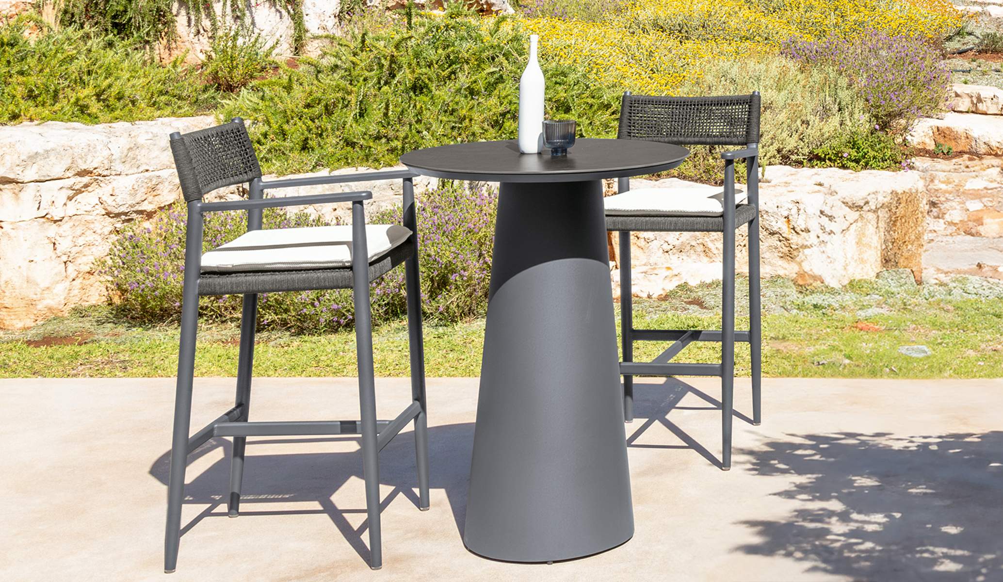 The Dolcevita bar table is designed to enrich the environment with a touch of modernity and style. The slender conical base supports a compact round top, ideal for creating an elegant and functional bar station in outdoor spaces. It stands out for its minimalist design and its solidity, offering a refined base for moments of conviviality outdoors.