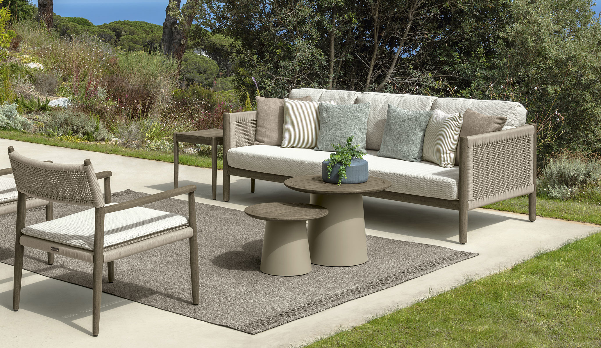 Designed to give freshness to the outdoor living room, the Dolcevita coffee table has a lively and harmonious design. The teak wood top is supported by an aluminium base. The perfect balance between these elements is highlighted by the fine finishes of every detail.