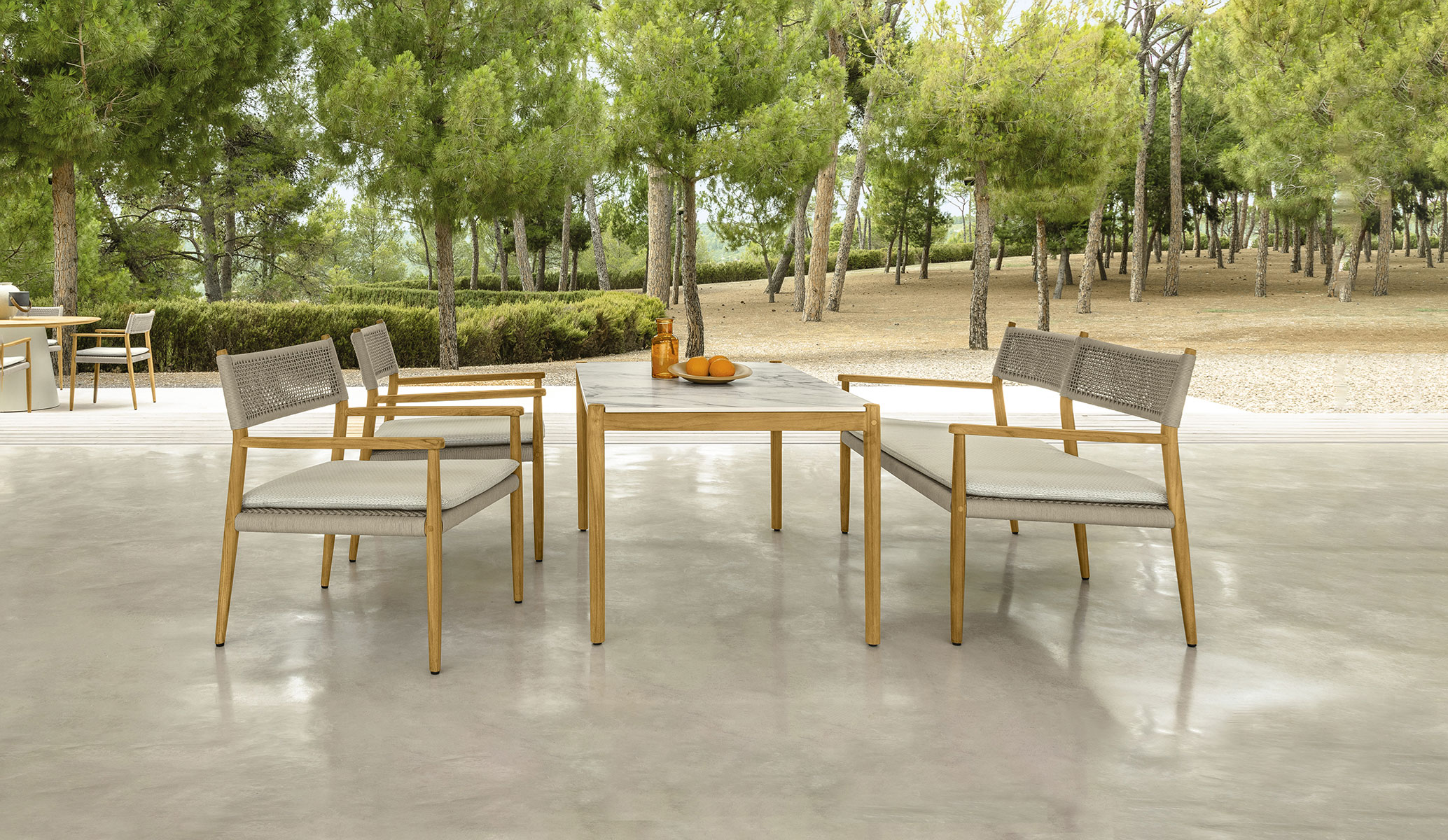 Inspired by warm summer evenings, the Dolcevita dining table is perfect for moments of conviviality. The simple structure highlights the attention to detail and the natural beauty of teak and stoneware. The seductive textures of these materials radiate a light and fresh atmosphere, which characterizes with style, garden and outdoor living.