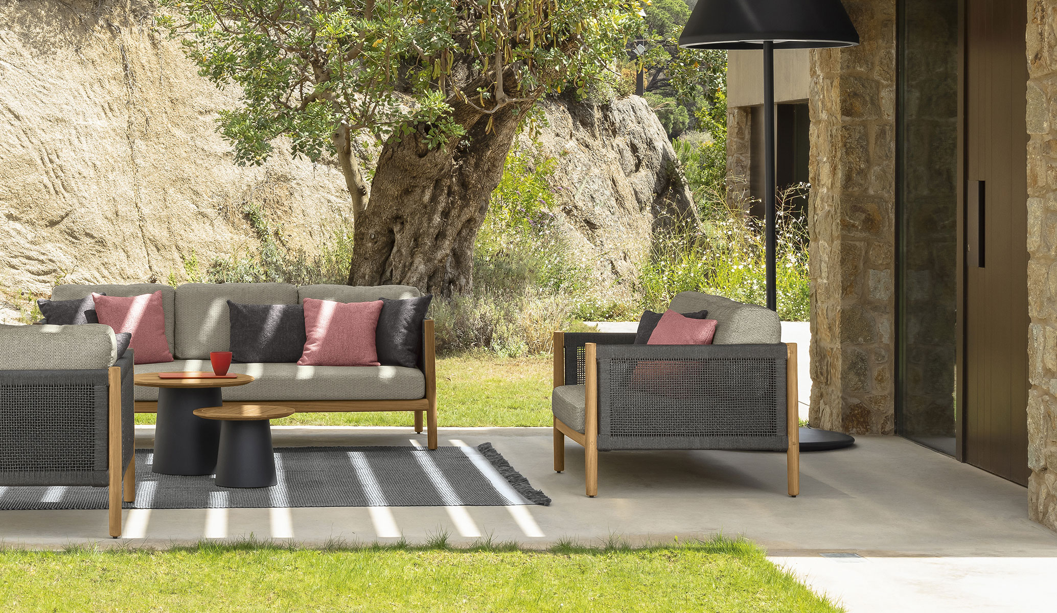 Ideal for a relaxing area, the Dolcevita living armchair exudes the lightheartedness of summer evenings. Armrests and backrest are characterized by a dense weave of strings that highlights the texture of the wood. This piece of furniture fits in outdoor environments giving a touch of freshness and easily adapts to different styles thanks to the multiple colors in which it is available.