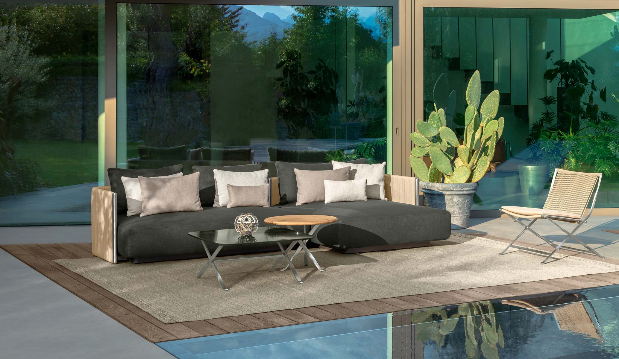 The several combinations offered by the George modular sofa, the carefully selected fabrics, the cushions with removable and weather-resistant covers, make this sofa the perfect product to decorate your outdoor space.