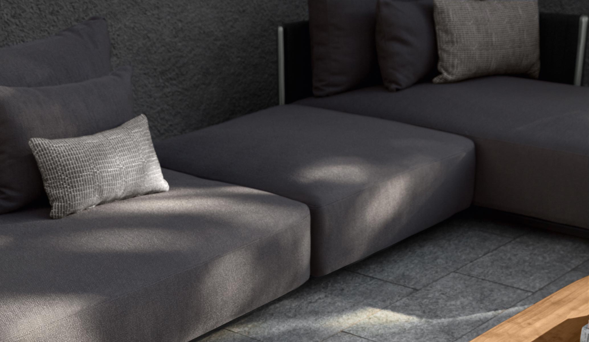 The generous padding of the George pouf makes it the perfect piece of furniture to complete the modular sofa of this collection.