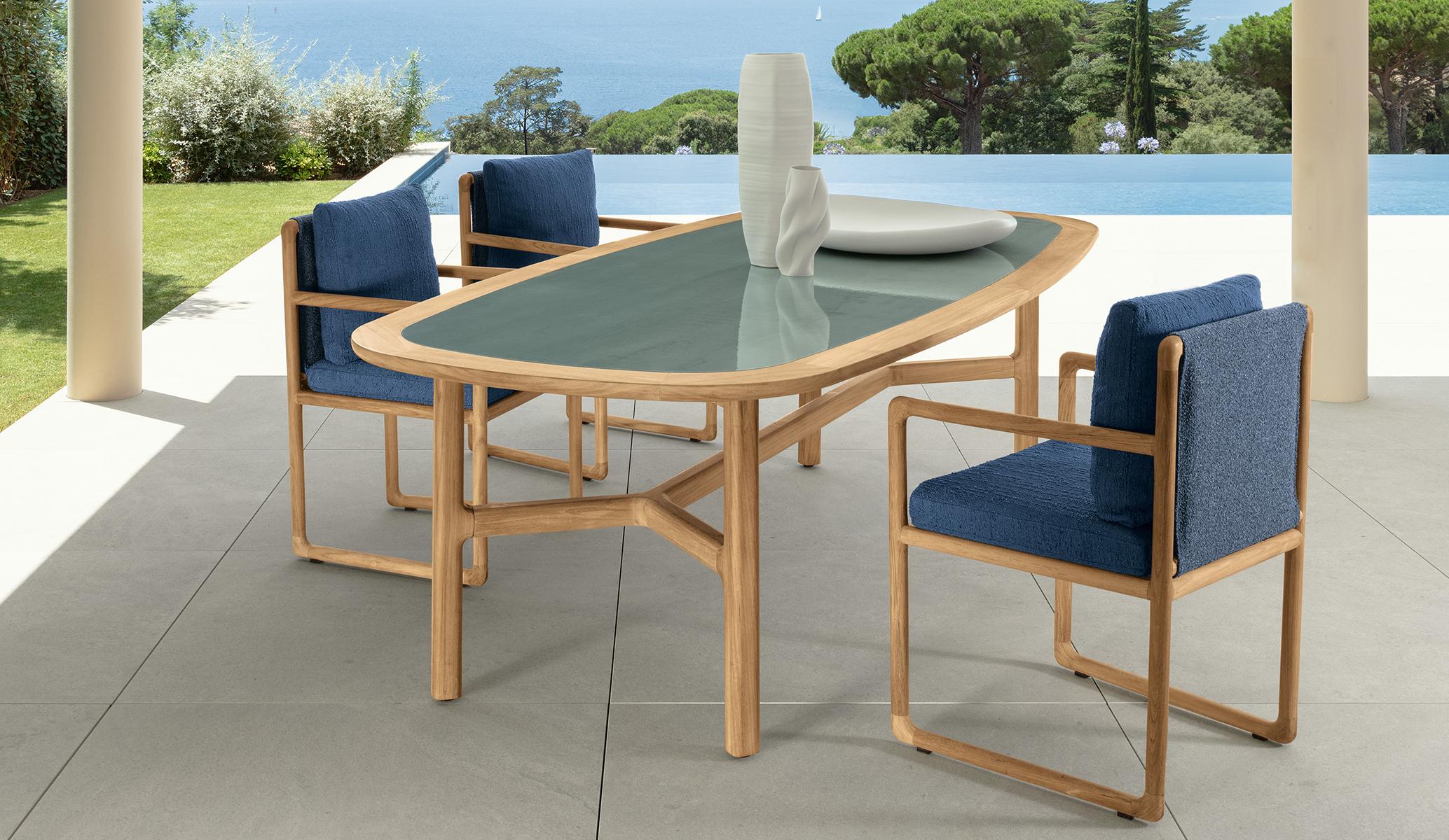 The 260×120 dining table combines aesthetics and practicality. The strong natural teak structure supports a gres top, in various colours, which provides character and harmony to the room. Thanks to its generous dimensions, it is ideal for a cozy outdoor dining area, perfect for enjoying convivial moments.