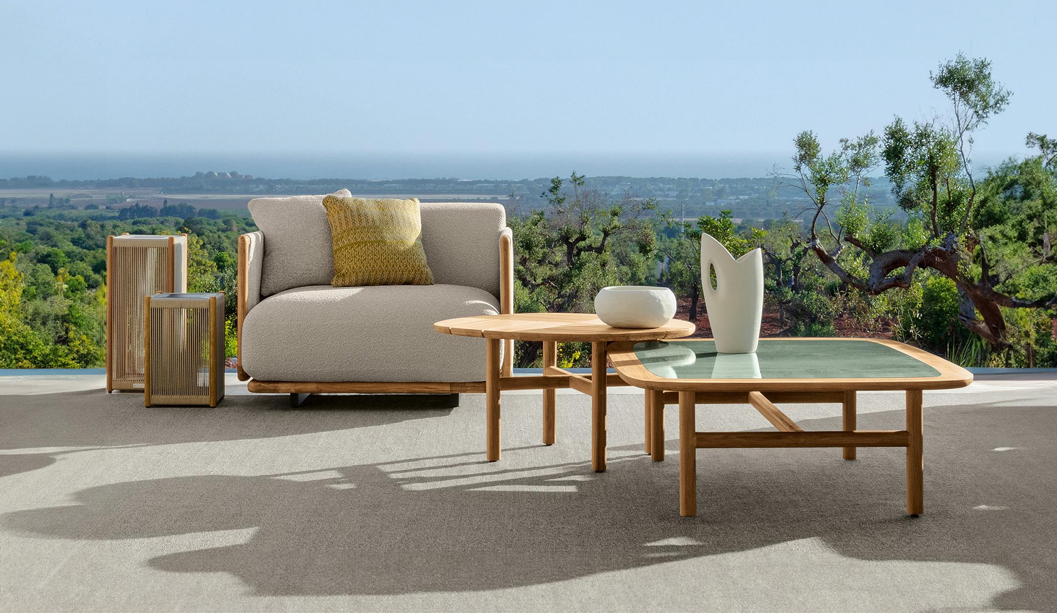 The Living Armchair combines comfort and style in a compact and elegant design. Thanks to a generous and enveloping seat, completed with backrests and armrests in removable fabric, it is perfect to enrich the outdoor environment with a touch of class and contemporary style, ideal for relaxing moments of comfort and elegance.