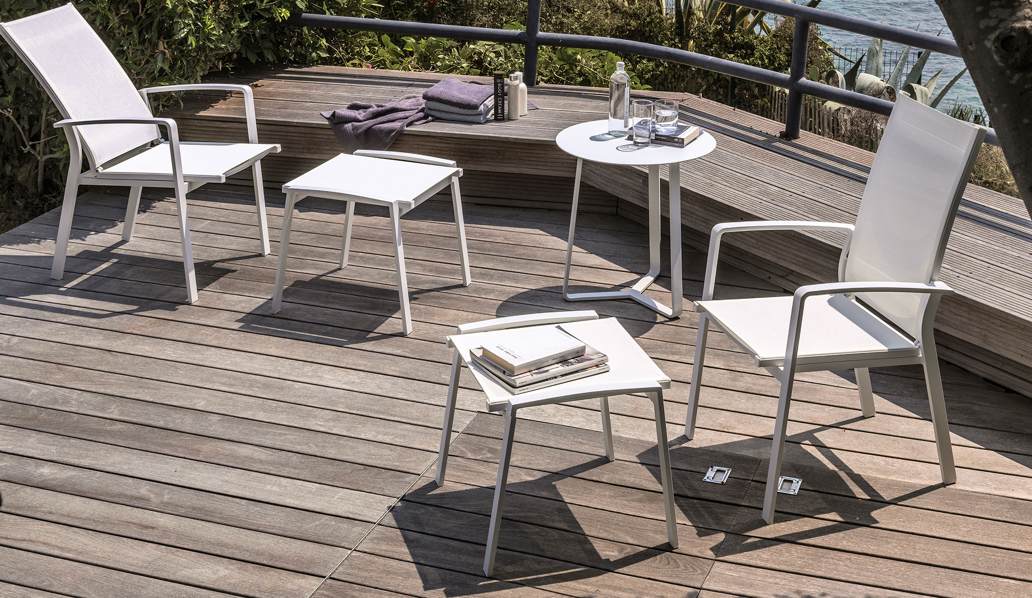 Sturdy aluminium structure and comfortable textilene support, the Pouf of the Lady collection is a perfect accessory for a modern and elegant outdoor space. The squared shape of the product is in line with the concept of the collection and combines perfectly with other Lady products.