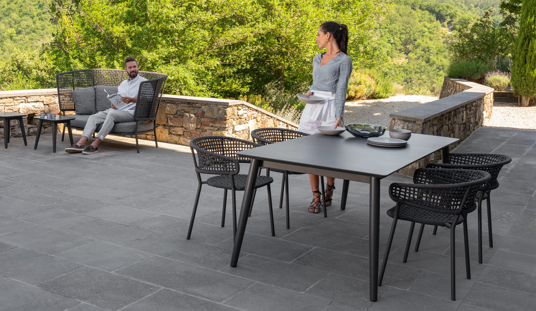 The Dining Table from the MoonAlu collection is perfect for outdoor garden dining. Made entirely of aluminum and available in two color options, it can accommodate up to 8 seats, thanks to its extendable length of up to 215 centimeters.