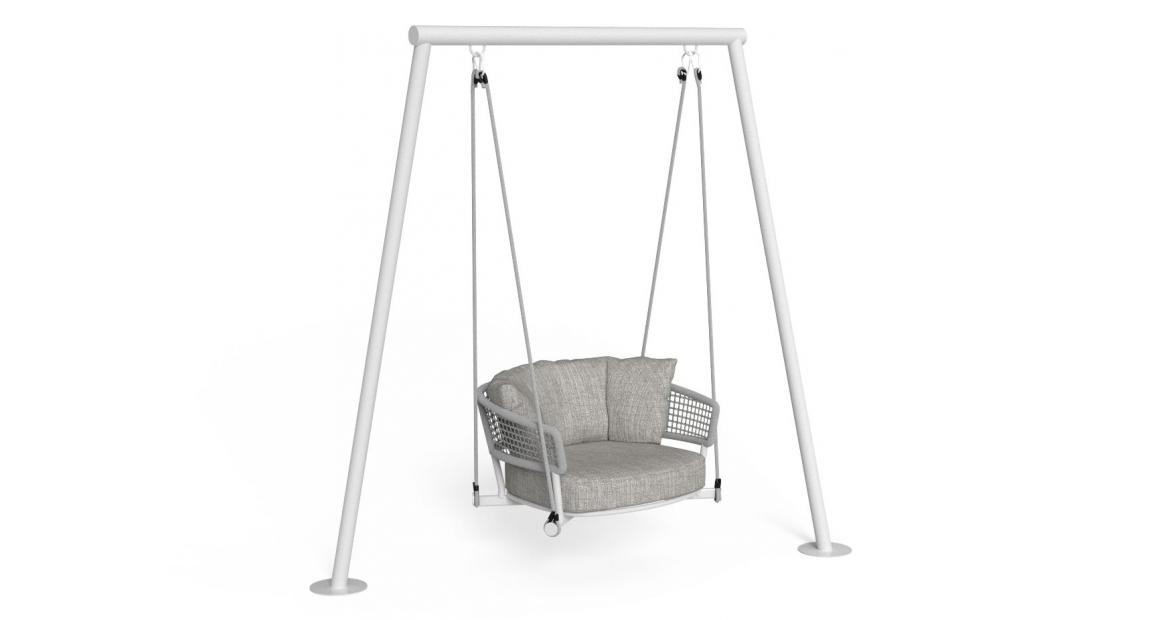 The Moon dining table is designed for the outdoors but with references to the typical colours of the indoor. The structure is in aluminium and the top in ceramic.