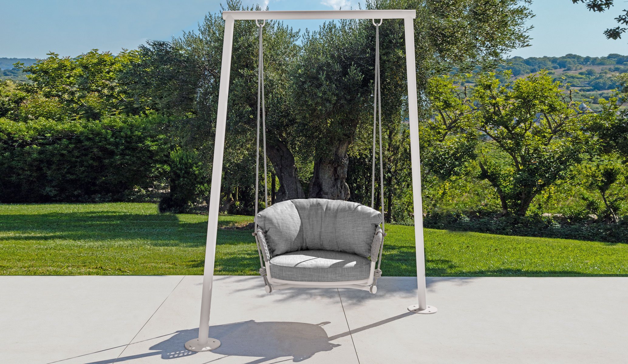 Talenti introduces an innovative and intriguing product with the Swing Chair from the MoonAlu collection. The supporting structure, made of aluminum, provides stability to the chair, while the quick-dry foam cushions and synthetic fabric seat ensure maximum comfort. The chair is securely attached to the frame with synthetic ropes. Available in two neutral color options, the swing is perfect for adding a personal touch to your garden decor.