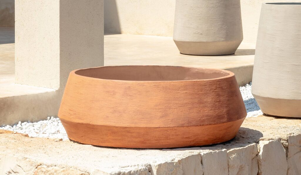 With a wide and low shape, it is perfect for hosting short plants or compact floral arrangements. Its geometric design adds stability and a modern touch to any environment.
