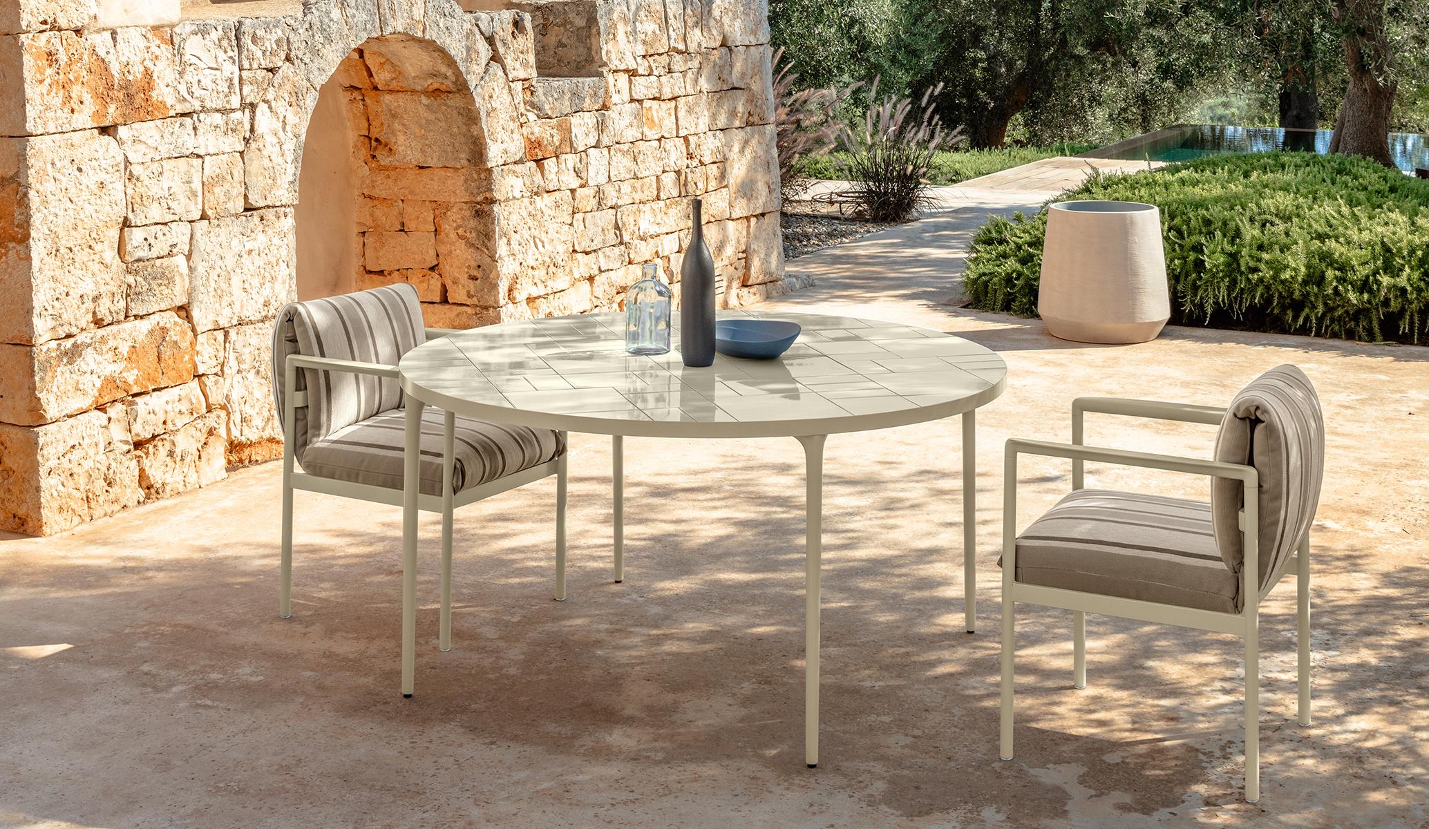 All the space for 8 people around a circular floor composed of an enamelled stoneware mosaic and always different shades for a dining of true luxury.