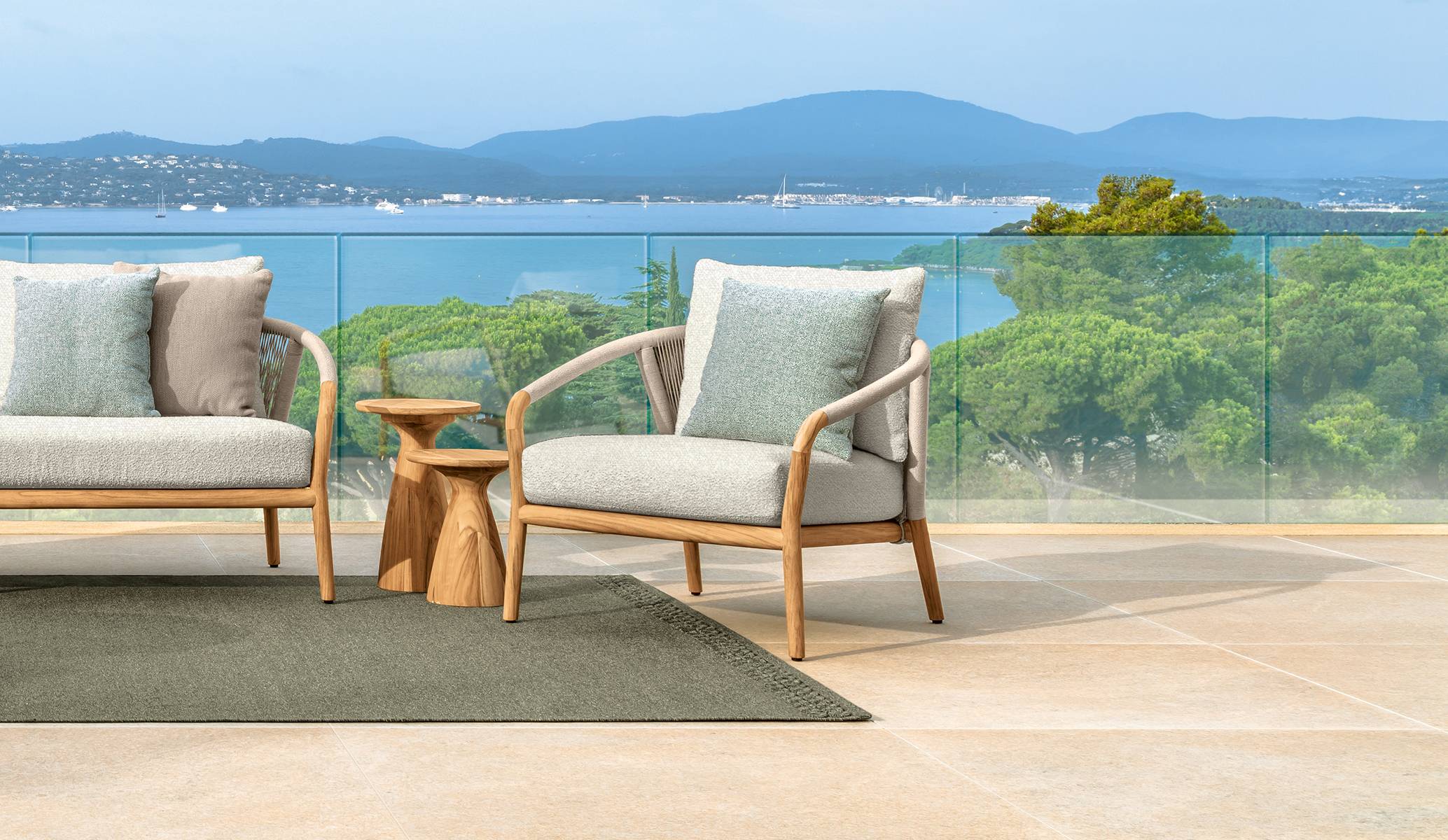 The Parker living armchair stands out for its modern and welcoming design, characterized by curved lines and a wooden structure that gives a touch of natural elegance. It features cushions in light and neutral shades, which enhance the simplicity and comfort of the seat. The combination of high-quality materials and refined details makes these armchairs ideal for creating a sophisticated and relaxed atmosphere in any living space.