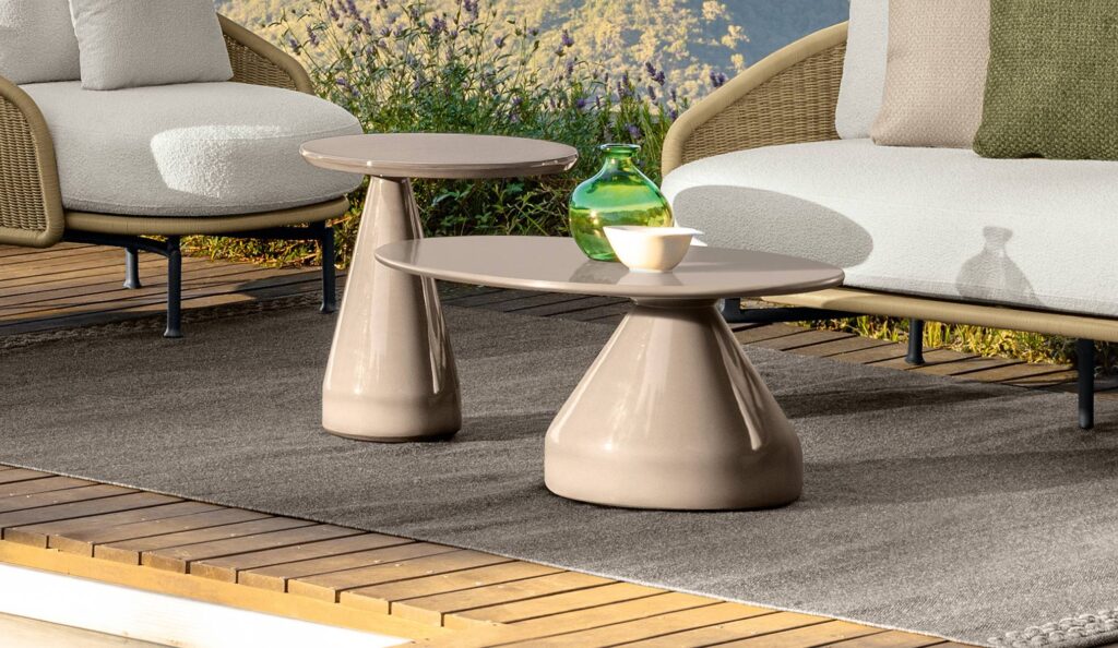 The d45 coffee table stands out for its elegant and modern design, characterized by a stable conical base that supports a circular top. Made with refined finishes, this table is ideal for adding a touch of class to outdoor or indoor spaces. Its solid structure and large surface make it a perfect piece of furniture to accompany seats and sofas, offering a practical and at the same time attractive surface.
