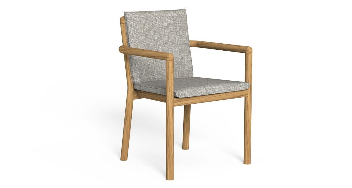 Prichi dining table elevates the natural beauty of wood and grit through a sophisticated and cozy chic concept. The teak wood, with its texture of warm tones is a reference to the natural world, which contrasts with the elaborate design of the solid structure. On it is placed the floor in grit, mottled by a pleasant texture of pastel colors. The combination of these elements gives the outdoor living room a perfect atmosphere for moments of conviviality, creating a meeting point between the modern style of the indoor world and the authenticity of the outdoor.