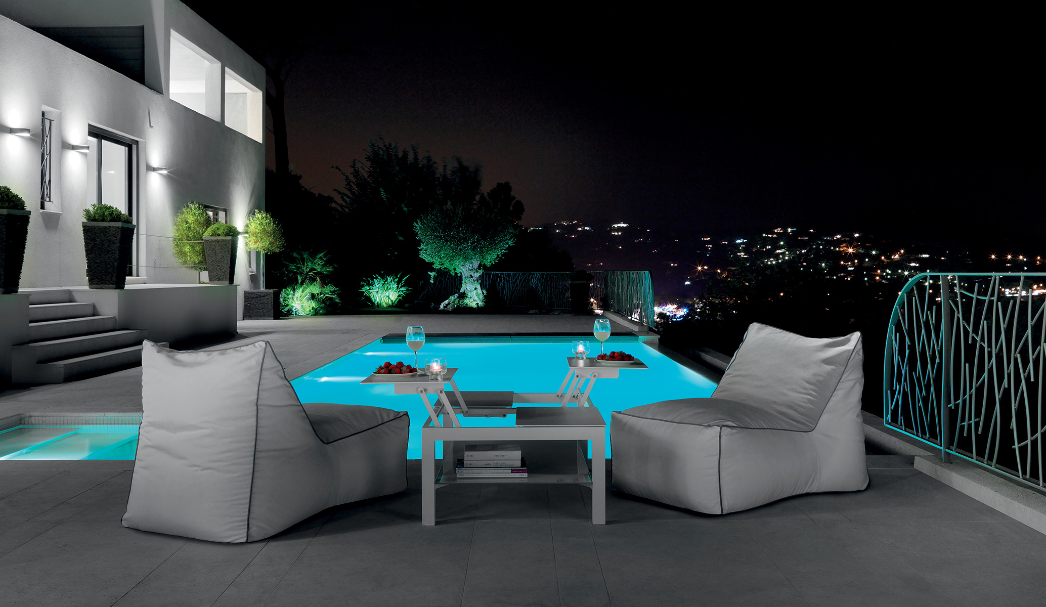 Its shape provides a high seating comfort while the colours of the fabrics grant sparkle and vivacity to any outdoor spaces, at a poolside or in your garden. It is made with a breathable, removable, easy-to-wash and weather-resistant fabric. In the padding there are flakes of quick dry foam and polystyrene balls. The fabric is available in the following monocolour tone: white, blue, green, taupe and grey.
