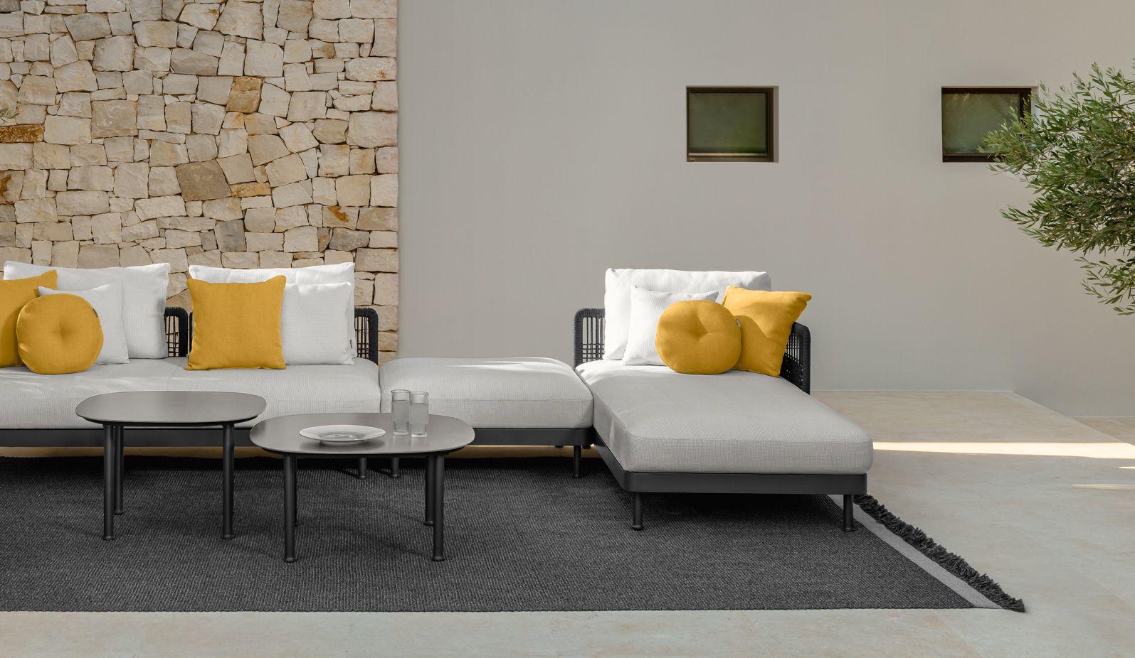 The Slam // Rope pouf with soft and essential lines with an elegant aluminum structure, is the perfect piece of furniture to complete your outdoor living room. The balanced design and the removable and washable cushions make the pouf suitable for any context, without sacrificing comfort and style.