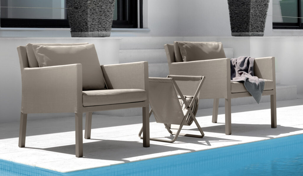 With its dynamic and particular shapes, the Step living armchair completes an outdoor living in full Talenti style. The relationship between the lightness of the seat and the backrest makes the product interesting, not common, feature that characterizes the collection. The structure is entirely in aluminium while the cushions and the armrests and backrest upholstery are in breathable textilene. Weather resistant.