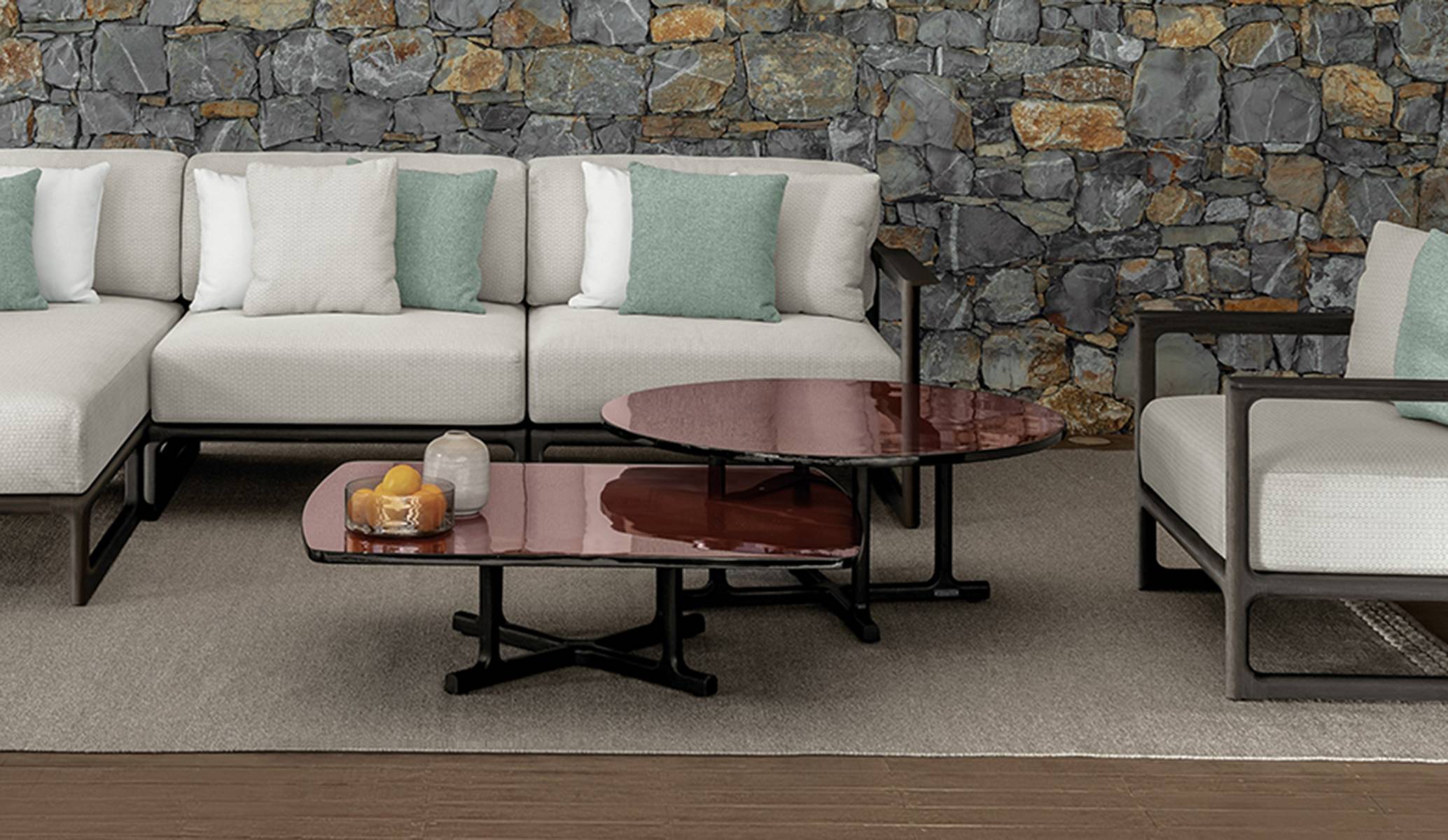 The Thea coffee table is designed to add a touch of sophistication to outdoor spaces. The teak base ensures stability and reflects the excellence of the collection, while the round and smooth tabletop comes in two finishes, enhancing the contrast with the underlying wood tones.
