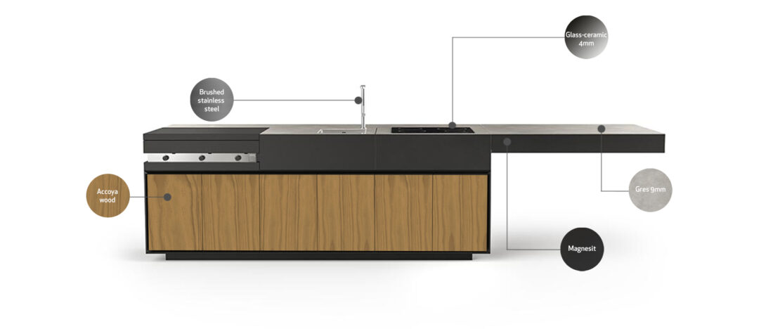 The corner base can be used as a connector between bases with 3 modules or bases with 2 modules. The corner base is not suitable for peninsula or snack bar.