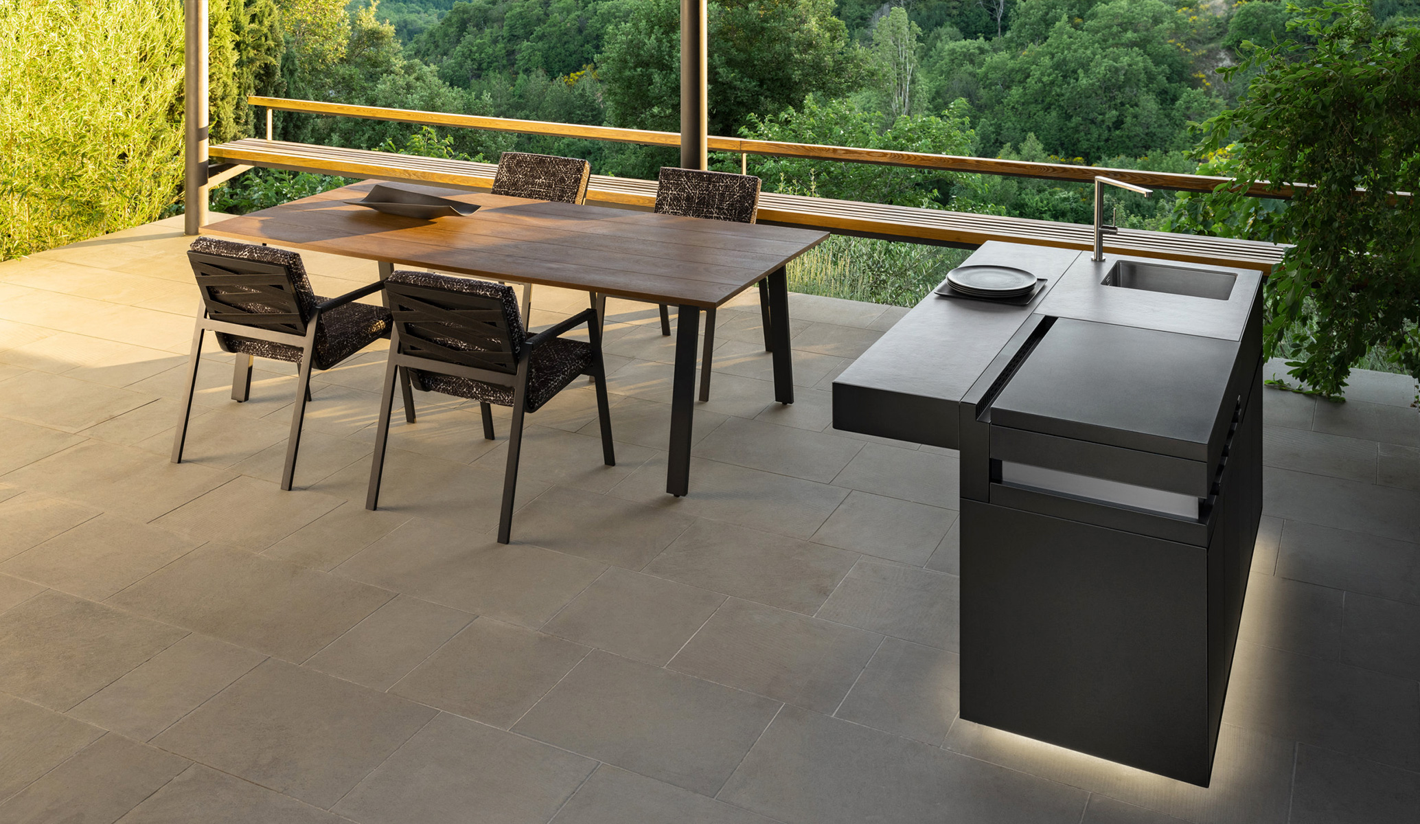 Hanging kitchen gres top available for the Tikal base with 2 and 3 modules.